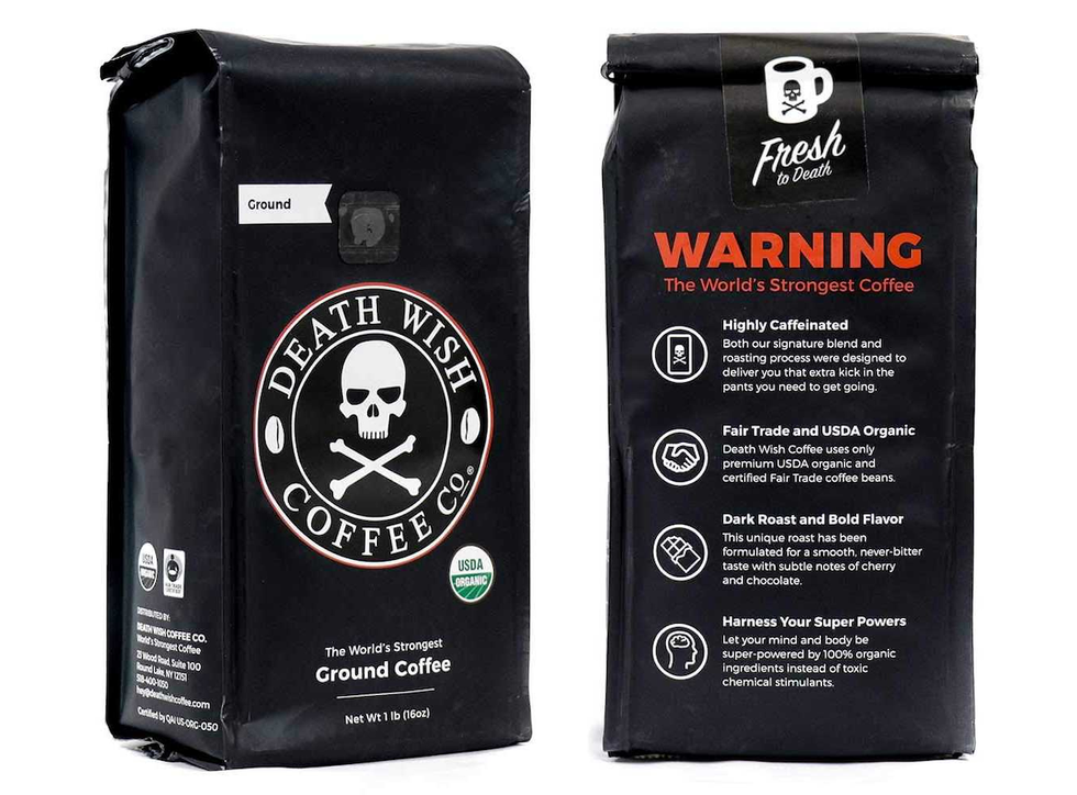 First you drink the coffee, then you do the things...and if it's highly caffeinated Death Wish Coffee in your mug, you're gonna get a lot more done! Touted as "The World's Strongest Ground Coffee", this deceptively smooth brew packs 59 mg of caffeine per fluid ounce and comes with a warning label. If you need to power through a double shift, have a newborn or pulled an all-nighter to study before a test, you definitely want this bold but never bitter dark roast in your cup.