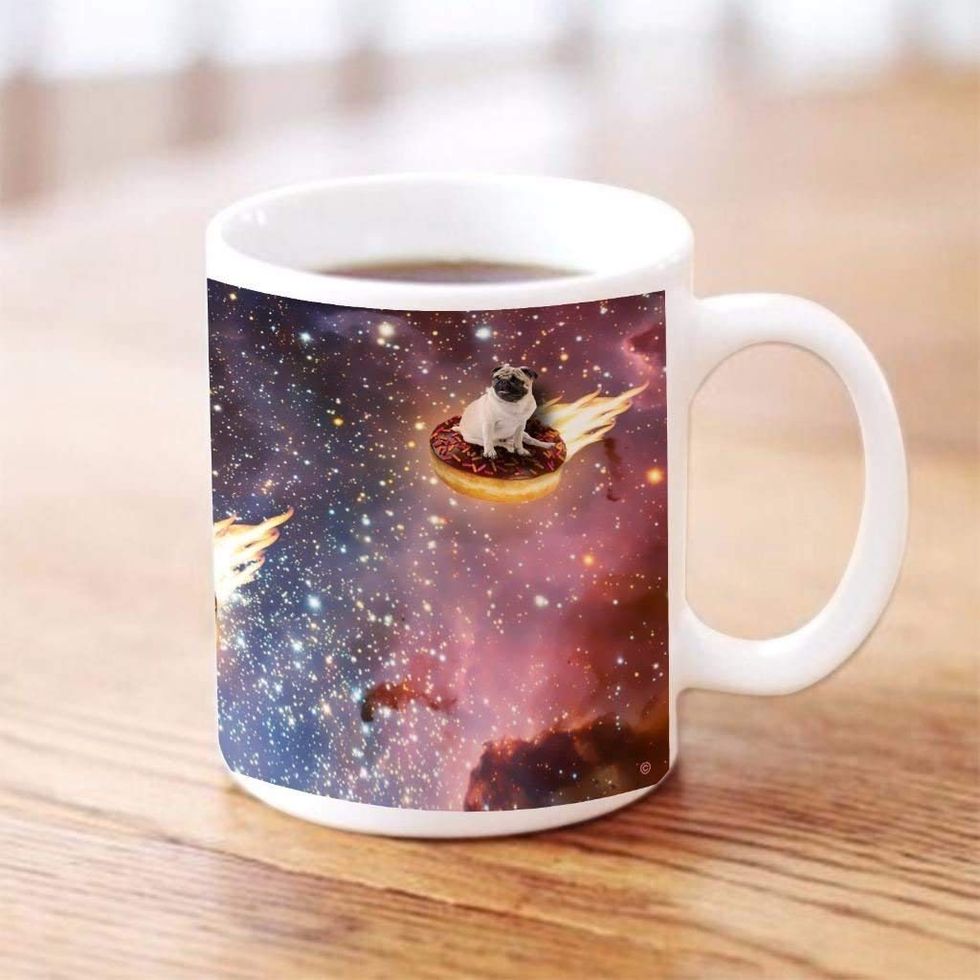 But wanna know what helps to ease the pain like none other? Drinking my far inferior hot tea out of this Printed Mug and Coffee Cups Space Doughnut Pug Funny Mug, that's what. I mean, just look at it. It has PUGS. In SPACE. Riding FLYING DOUGHNUTS. What more could you ask for in a mug?