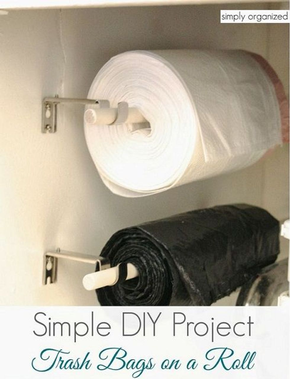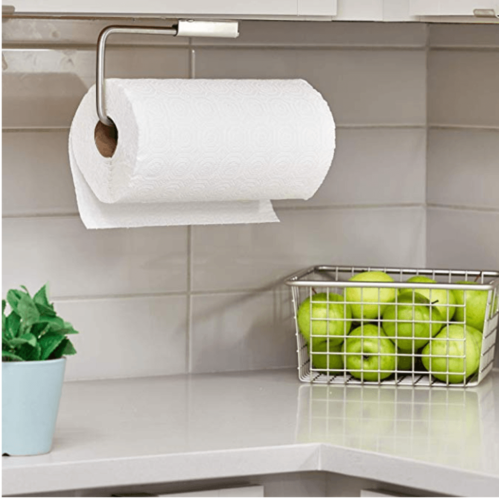 This wall-mounted holder from Amazon allows you to store trash bags anywhere against your wall or under your cupboard.That's a wrap!