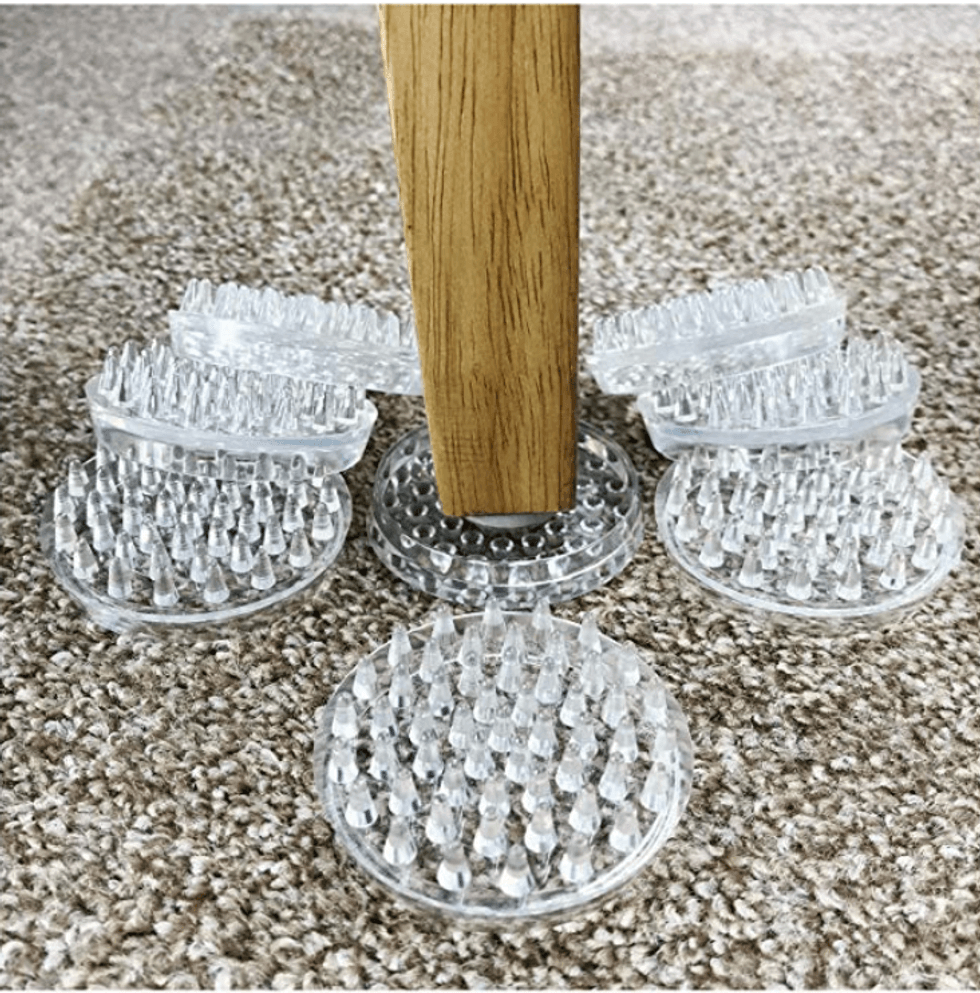 Just pop them under your furniture legs and voilà ! Their tiny little spikes ensure that there will be no furniture marks or damage.No more falling trash bags!