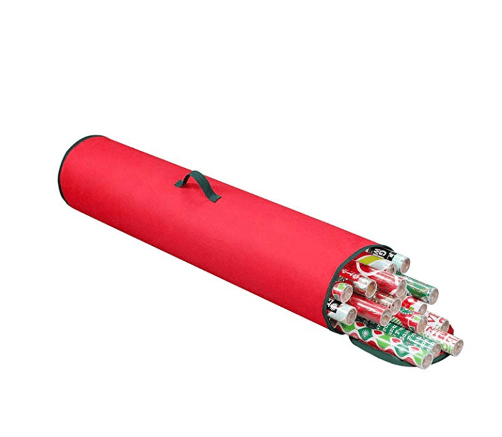 It is made to fit the long length of wrapping paper, and zips up at the top! What an easy way to store your holiday supplies?This hack cuts the mustard.