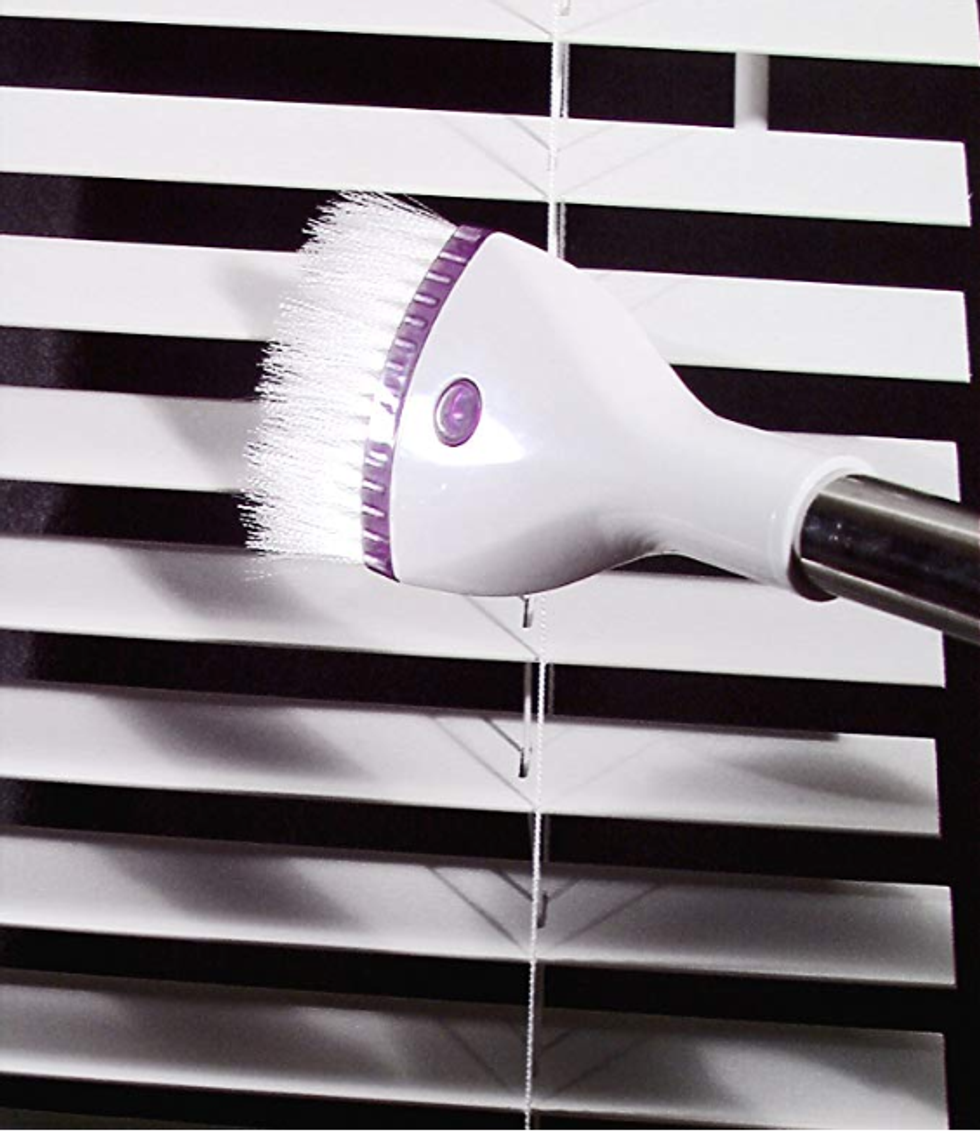Your kitchen tongs are the ideal tools for wiping your blinds. Just wrap a couple of microfiber cloths (or old T-shirts) around each side, secure with rubber bands, and go nuts with the dusting.For a quicker clean-up, you can use a vacuum cleaner made for blinds!