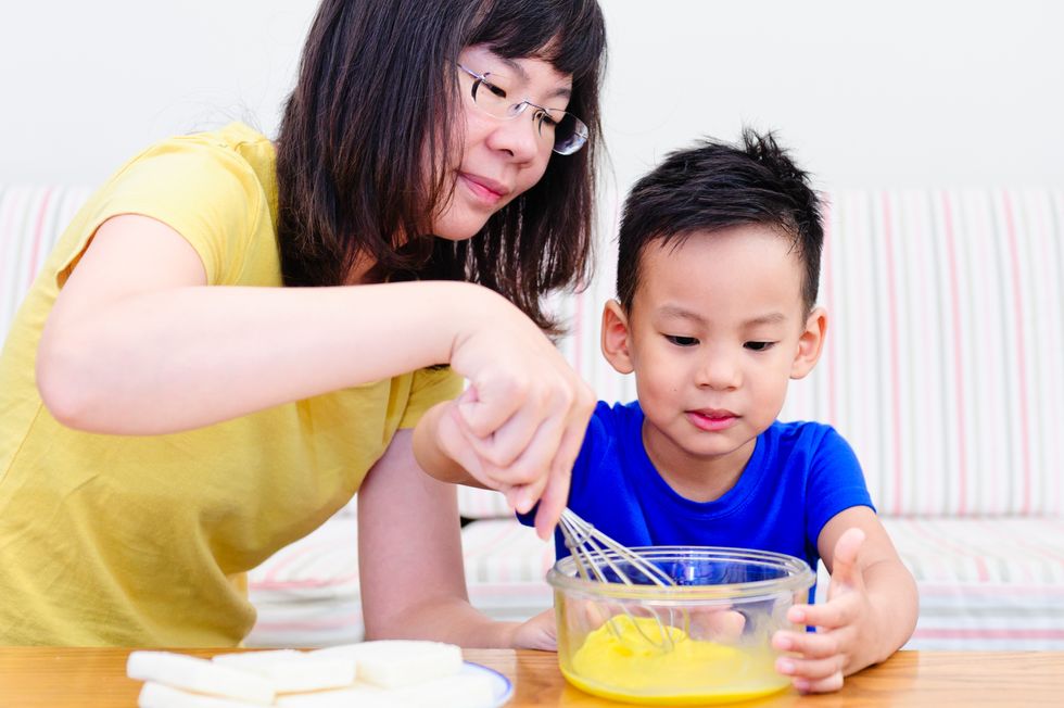 Next up you'll want to grab 1 cup of milk, 2 eggs, and one tsp of vanilla extract (although I like to add just a touch more). Take one of those other bowls from our beautiful set, and whisk these babies together. Really go for it. You want it to be smooth and creamy by the time you're done.Whisks galore!