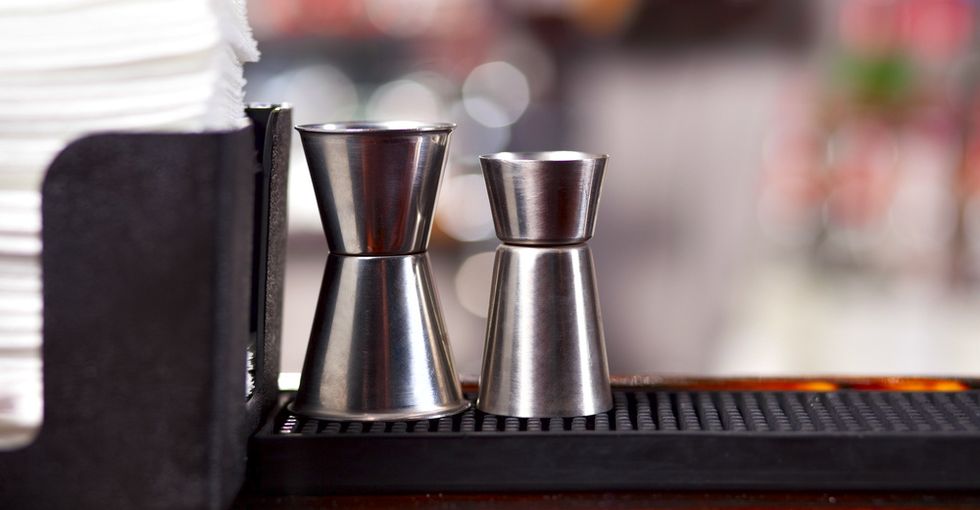 This nifty little bartending tool is often two-sided and features one end with a 1.5-ounce measurement as well as a 1-ounce cup on the other side. This Hudson & Lane Stainless Steel Cocktail Barware Double Measuring Jigger is stylish, well-made, and available on Amazon for under $10 bucks.Next, grab your shaker.