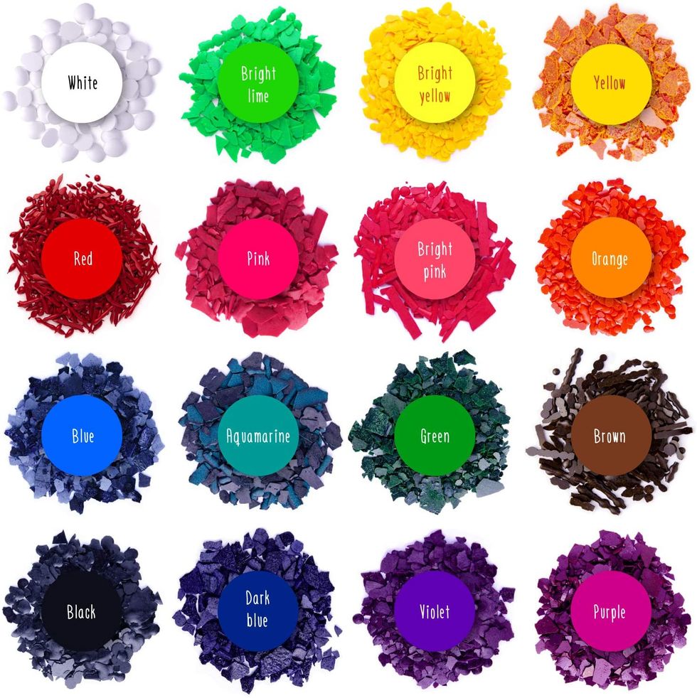This Radha Beauty Aromatherapy Top 6 Essential Oils includes tea tree, orange, lemongrass, eucalyptus, peppermint, and lavender. Choose your desired mix of fragrances and add between 1/2 to 1 ounce to your melted wax before stirring well to combine. Feel free to add more if you want your candles to be extra strong-smelling.While this next step is optional, it's always fun to add color to your candles.