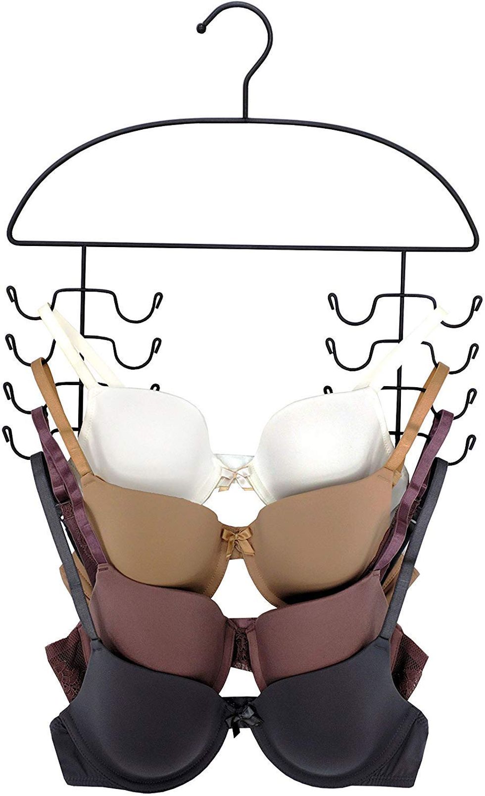 These clothes hangers get so much love for the room they add to your closet thanks to vertical storage - you can hang eight tank tops or four bras on them to free up drawer space! It'll also keep your bras in better condition than being shoved into a drawer that'll crush the cups. You can also hang jewelry, scarves, belts and other accessories from the uniquely-shaped arms!This Gratitude Journal Is A Real Mood-Lifter