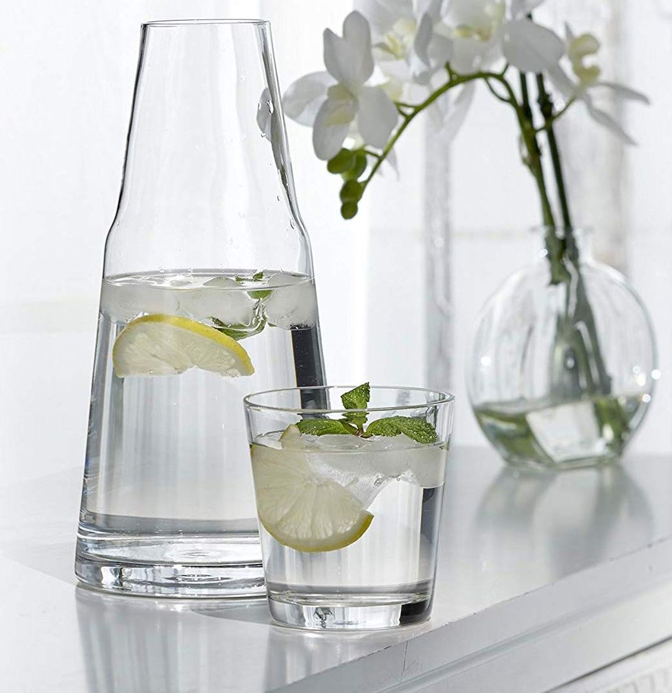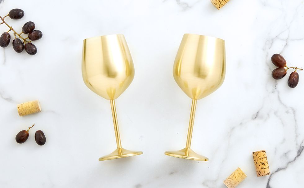 Two things I’m obsessed with: weirdly shaped water bottles and glass water bottles. For the latter, however, I know I’m far too clumsy to actually own one. This bottle hits all the major notes and is even klutz-proof thanks to its Tritan plastic, a top-tier glass dupe. Textured silicone lines the bottle for a better grip and less sliding on tables, and each color has a slightly different pattern.These Gold Wine Glasses