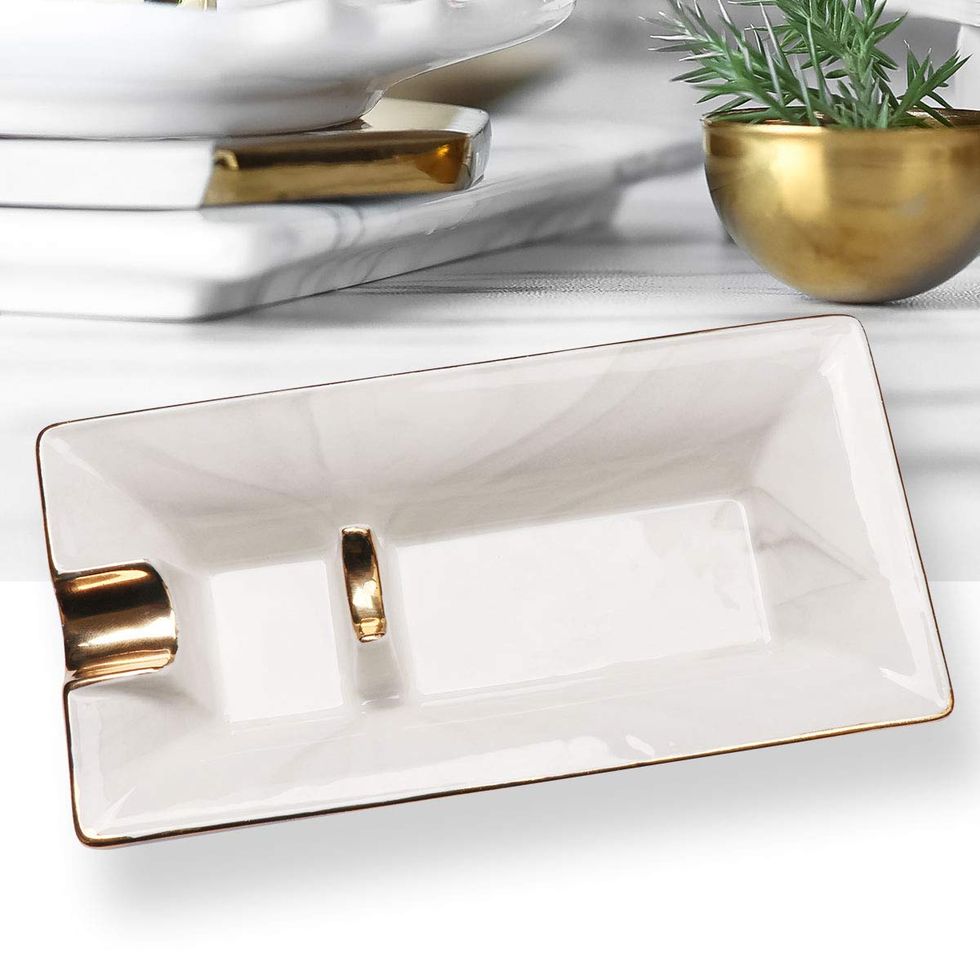 Did you know that they don’t have graham crackers in Australia? This broke my teenage heart on a trip. As an adult, I definitely want more s’mores in my life, but I don’t want to get one of those plastic, single-use appliances. I like that these interlocking baskets can just slide into the oven (definitely with some foil underneath) for some quick treats. As long as it’s cleaned well, I could definitely see this getting some use as a six-portion crisper rack.This Marble Ashtray