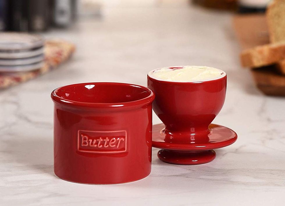 Butter is better. There, I said it. No matter how hard times have gotten in the past, I always splurge on good butter. Unfortunately, it’s generally too hard if left in the fridge. I like that butter crocks provide a less branded experience while keeping butter fresher than in a dish. It actually stays fresh for about a month without going rancid. My appliances and pots are red, but you can choose from a dozen color varieties to match your kitchen.Trending