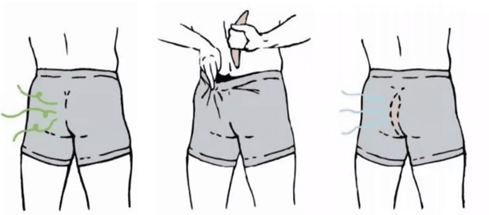 And wedged between your butt... You know, where you fart.Using high-tech, odor-eliminating technology...