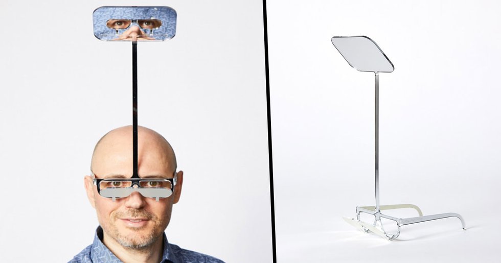 The glasses were created using a sheet of mirrored acrylic with a 45-degree arc to ensure that the smaller mirror can reflect the larger mirror, which is positioned outwards, giving whoever wears them a whole other view. Got that? A little confusing, I know.It has to be one of the most genius ideas, right?