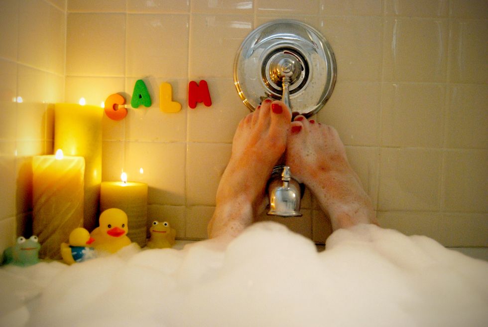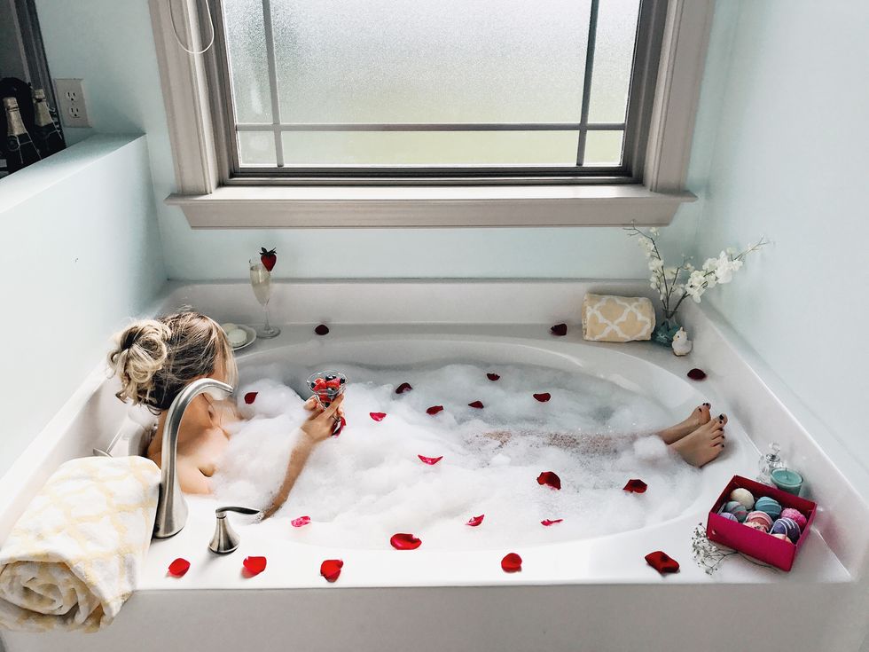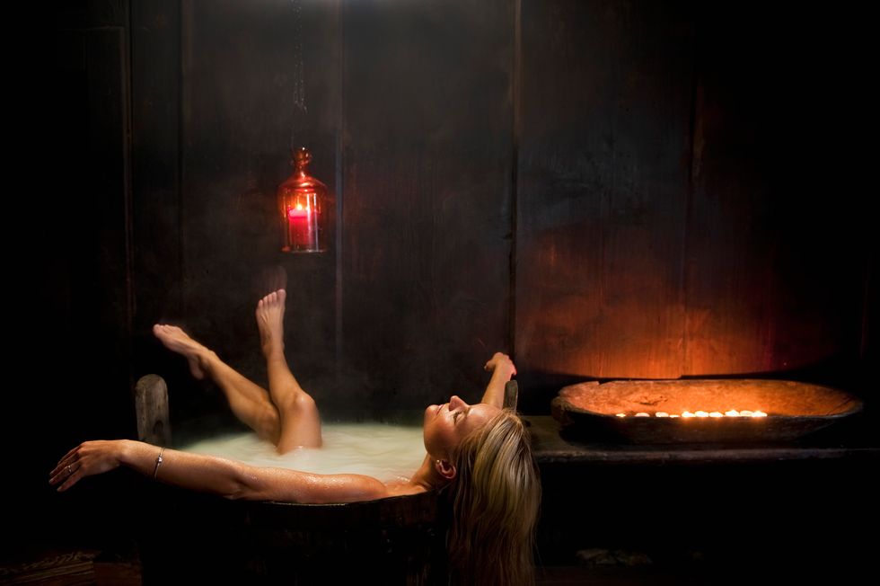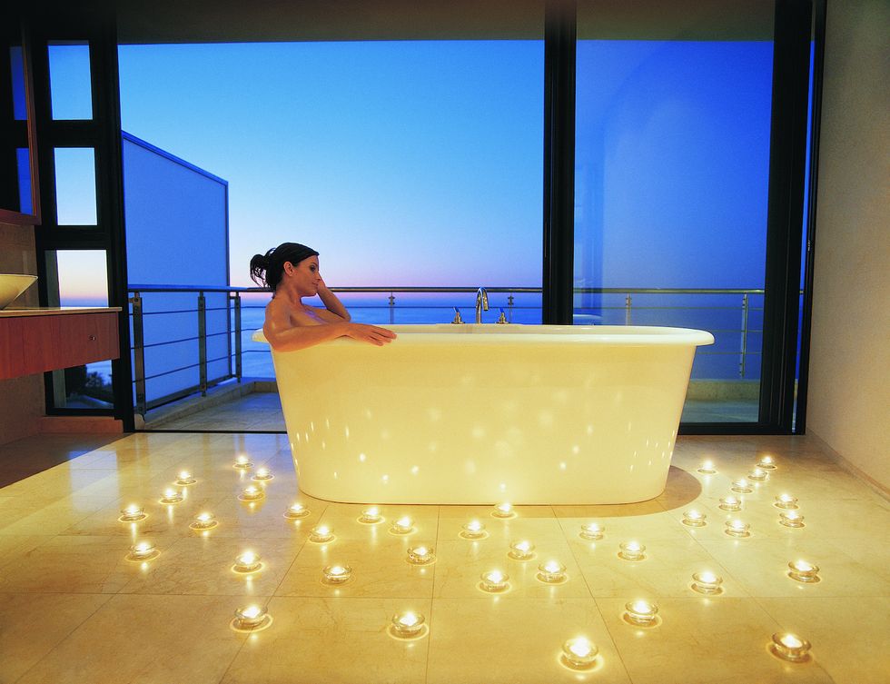 I love imagining the minutes before she got in the tub. "Okay, let me just run the bath and then individually light 50 candles so the water's cold by the time I get in."What was I getting in this bath for again?