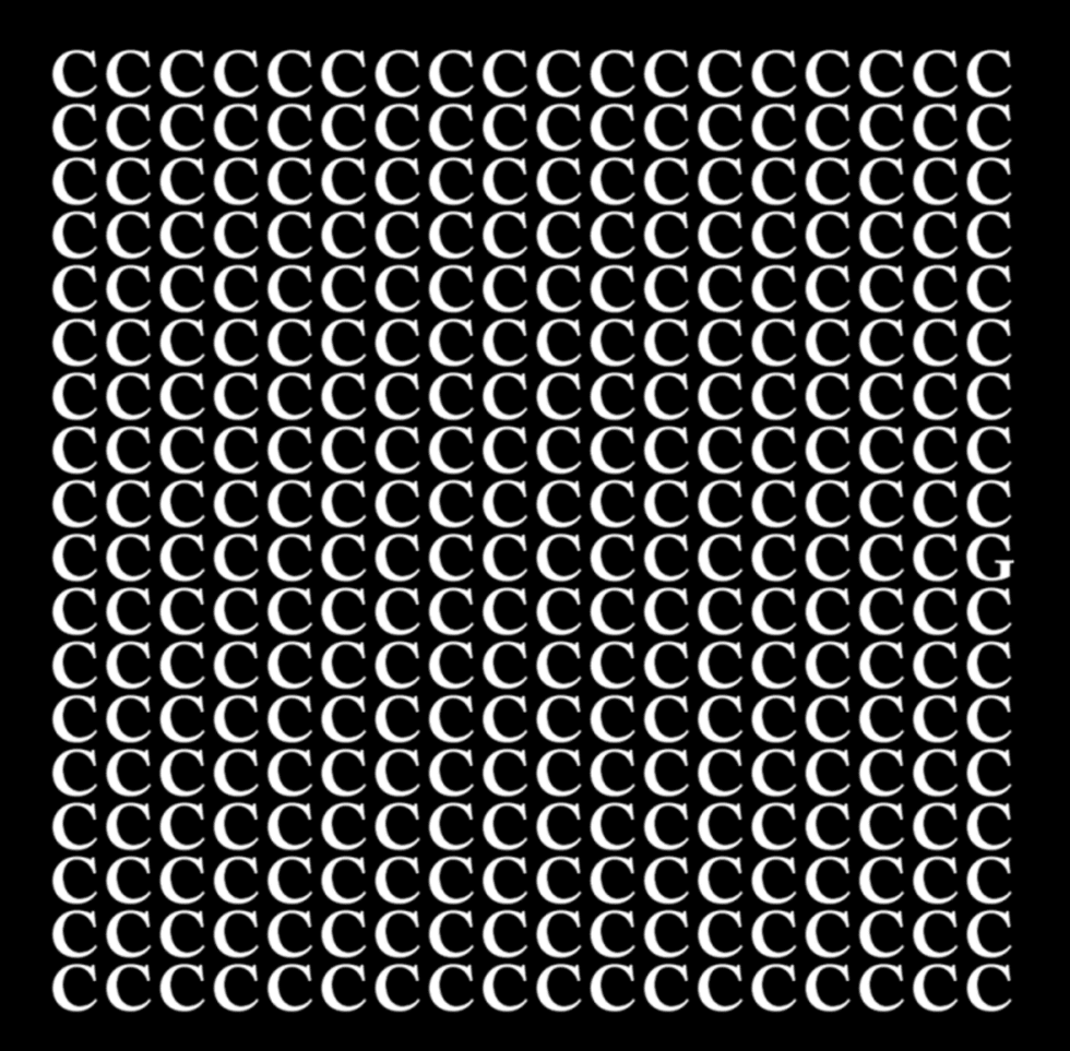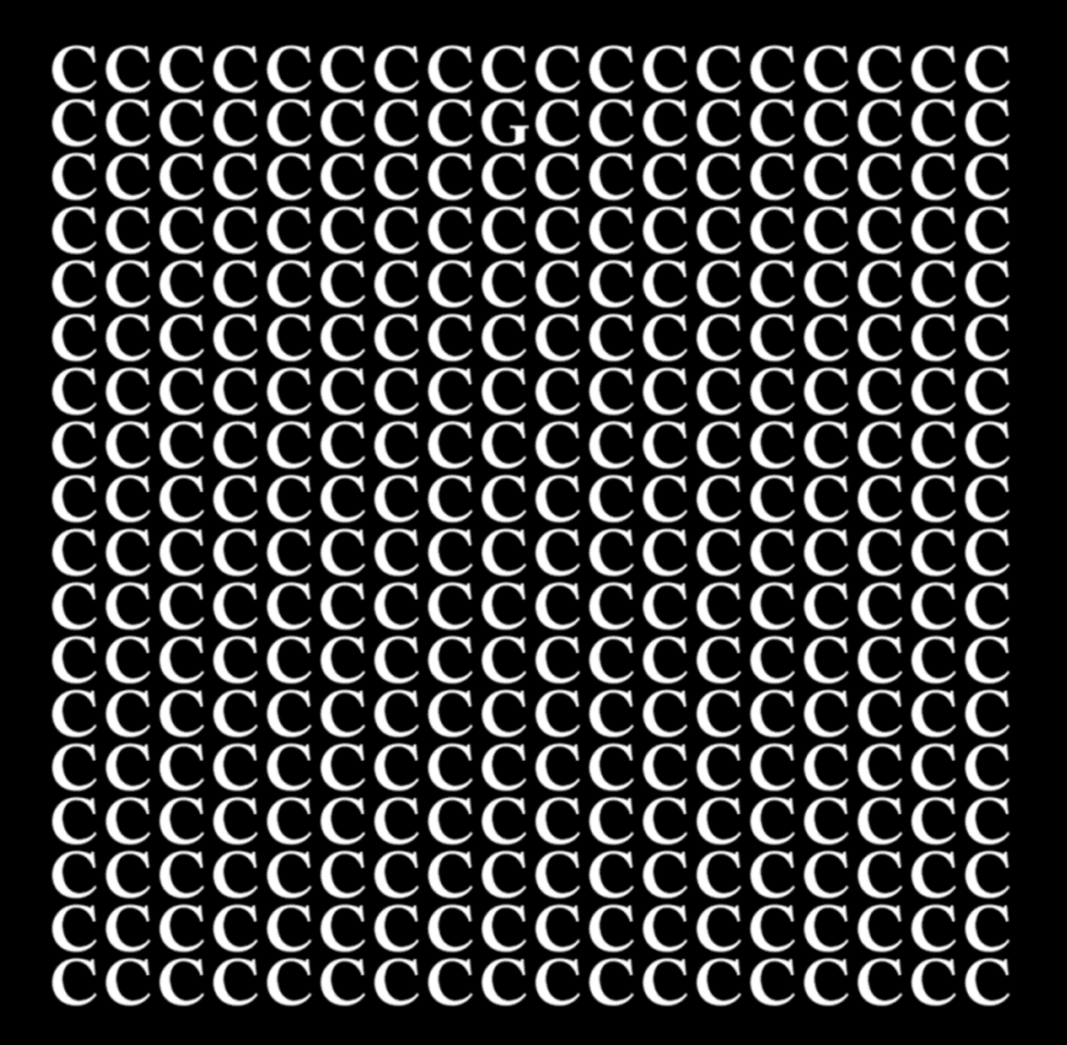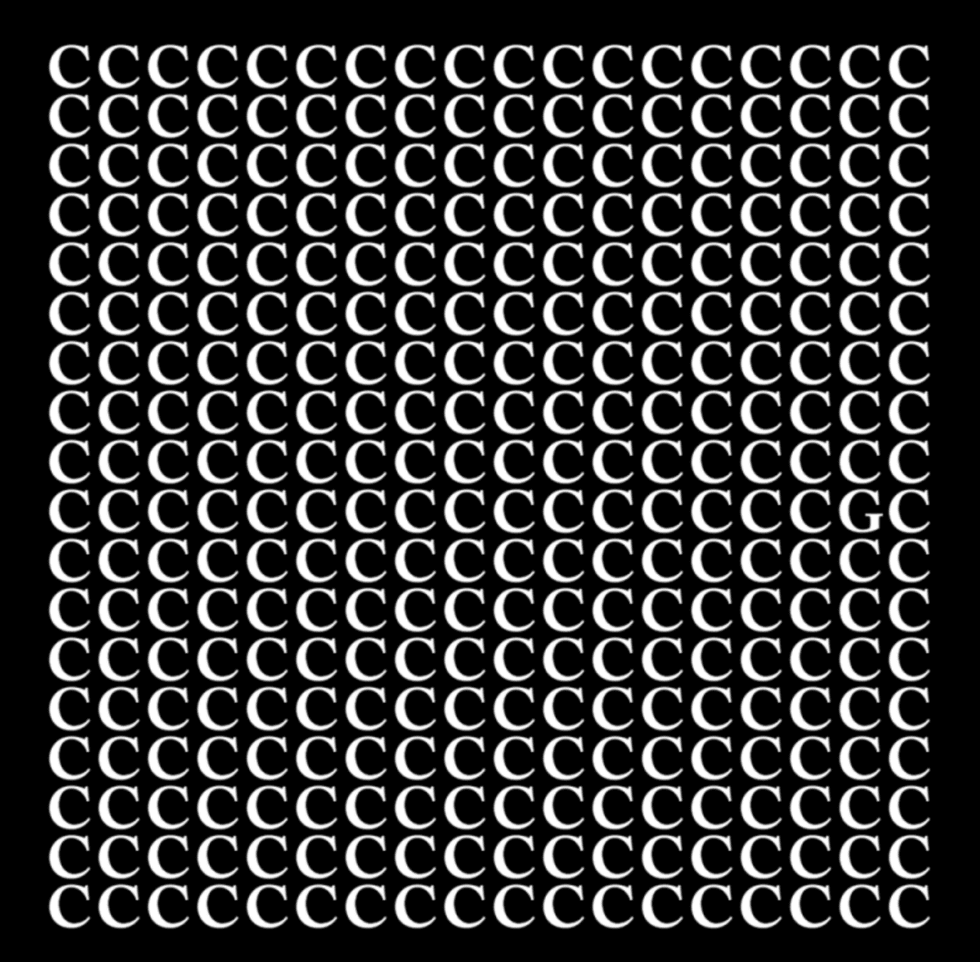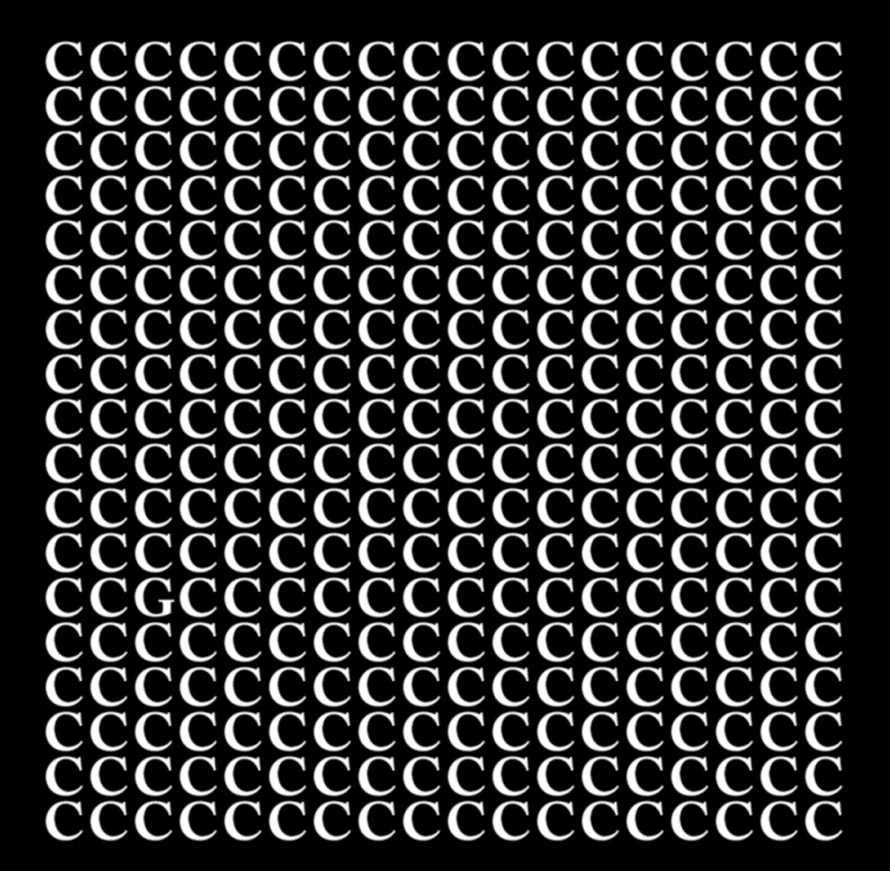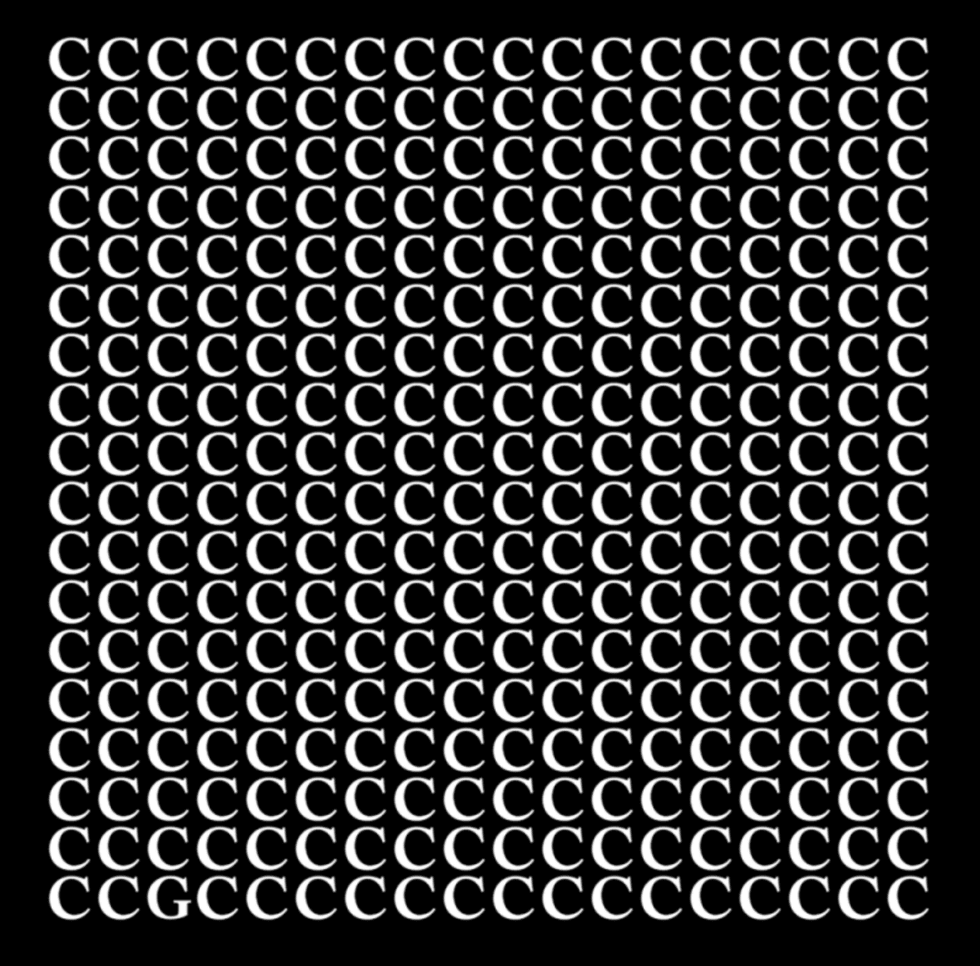 Ta-da! That's the final stage... How do you think you performed? If you were able to identify a singular letter "G" amongst all the "C"s, then you are one of the 4 percent of people with incredible visual perception. Bravo! If that has whet your appetite for a challenge check out Blue Kazoo's puzzle series below.The Color Series