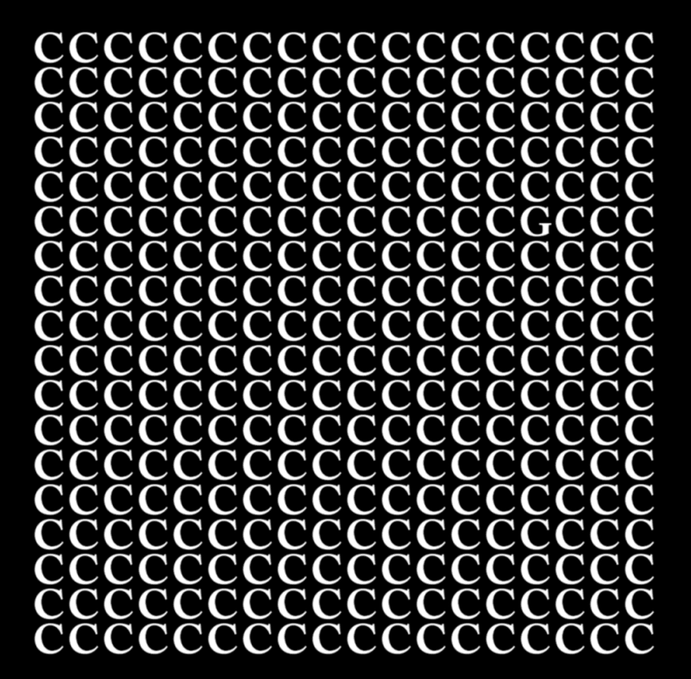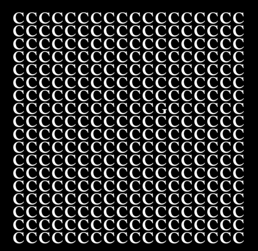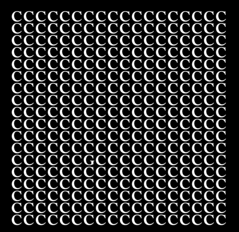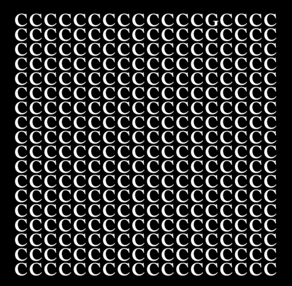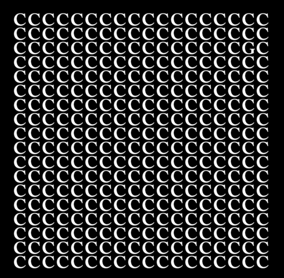 Ta-da! That's the final stage... How do you think you performed? If you were able to identify a singular letter "G" amongst all the "C"s, then you are one of the 4 percent of people with incredible visual perception. Bravo! If that has whet your appetite for a challenge check out Blue Kazoo's puzzle series below.The Color Series