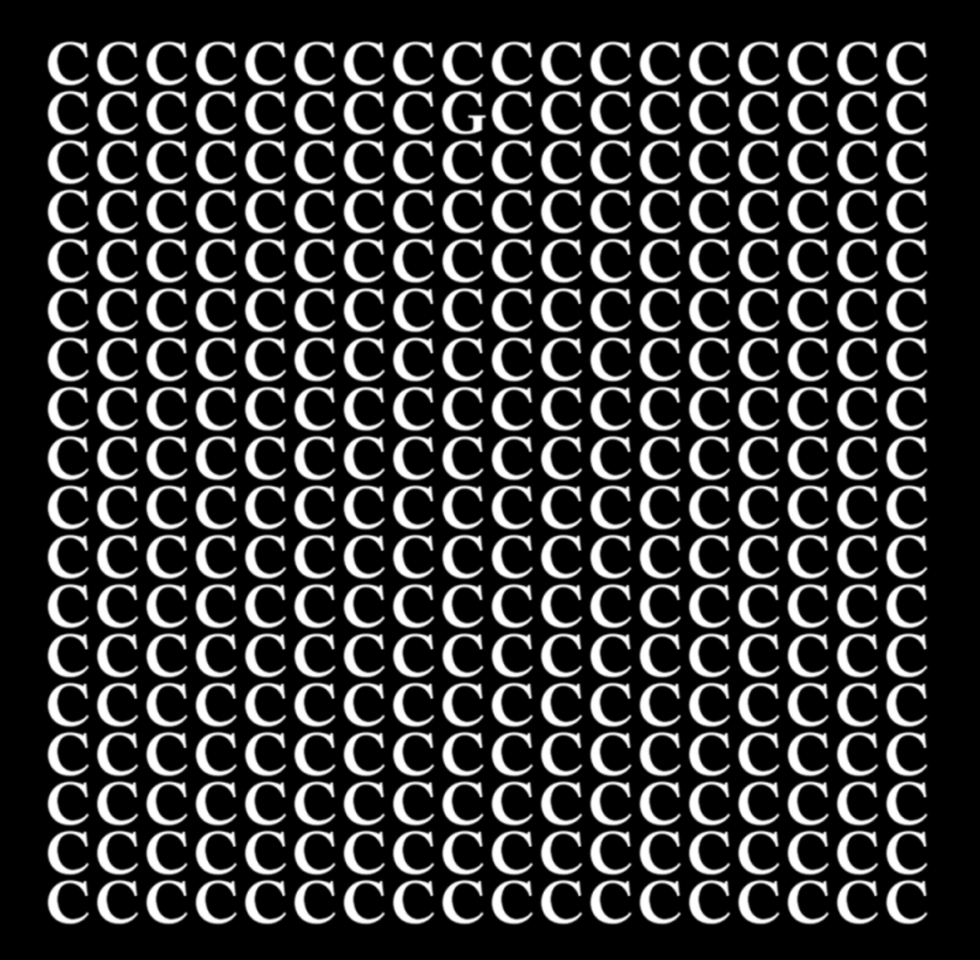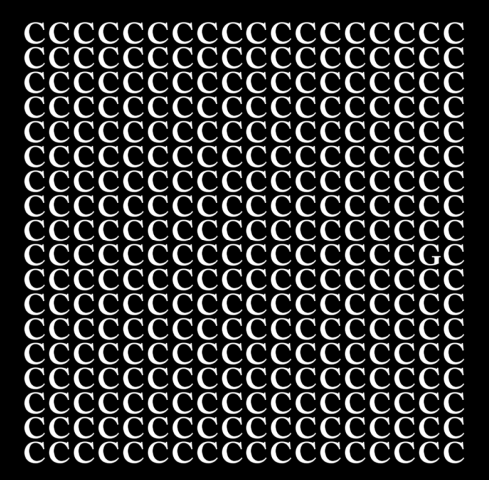 Ta-da! That's the final stage... How do you think you performed? If you were able to identify a singular letter "G" amongst all the "C"s, then you are one of the 4 percent of people with incredible visual perception. Bravo! If that has whet your appetite for a challenge check out Blue Kazoo's puzzle series below.The Color Series