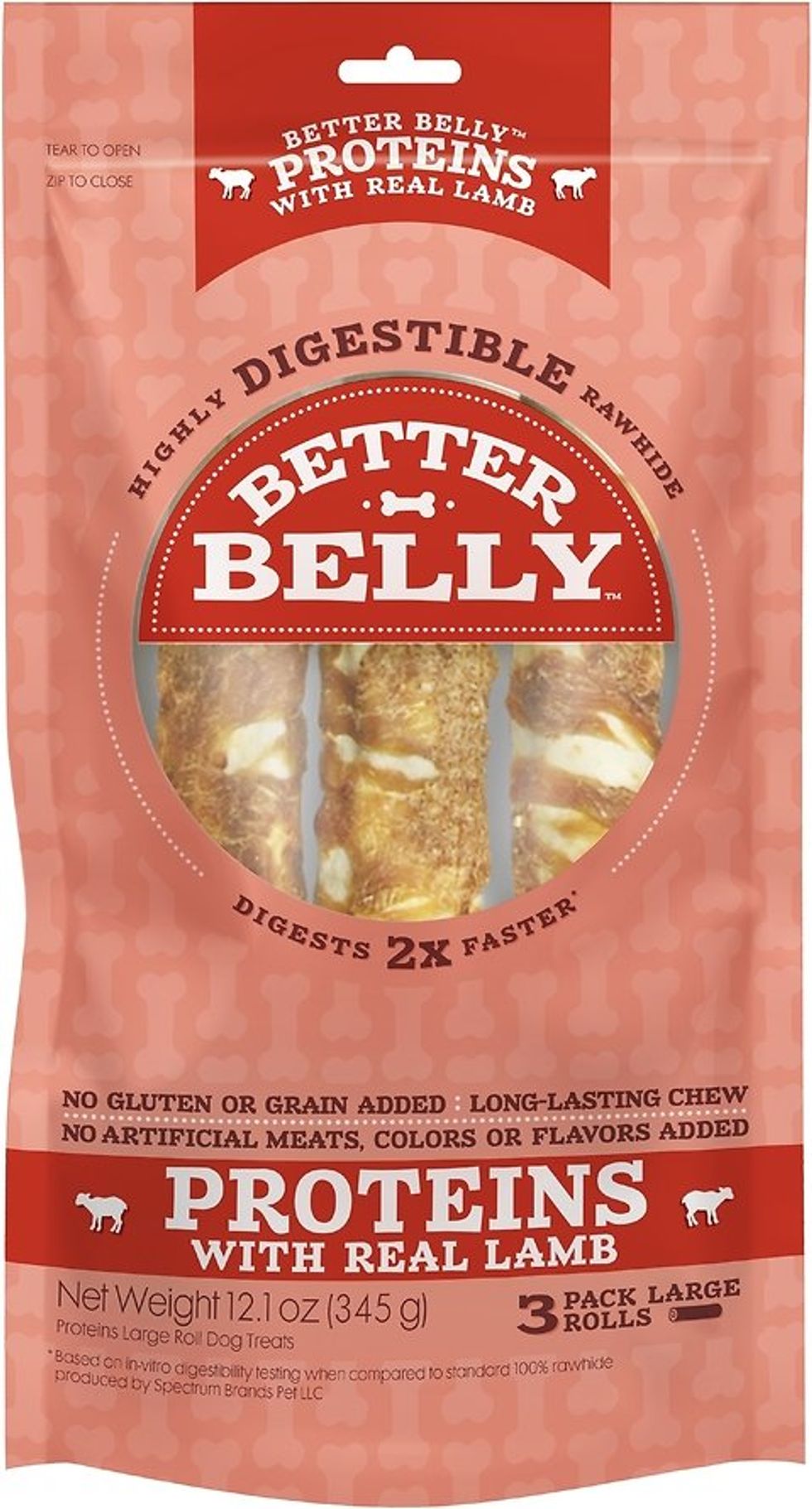 Better Belly Proteins with Real Lamb Flavor Rawhide Roll Dog Treats