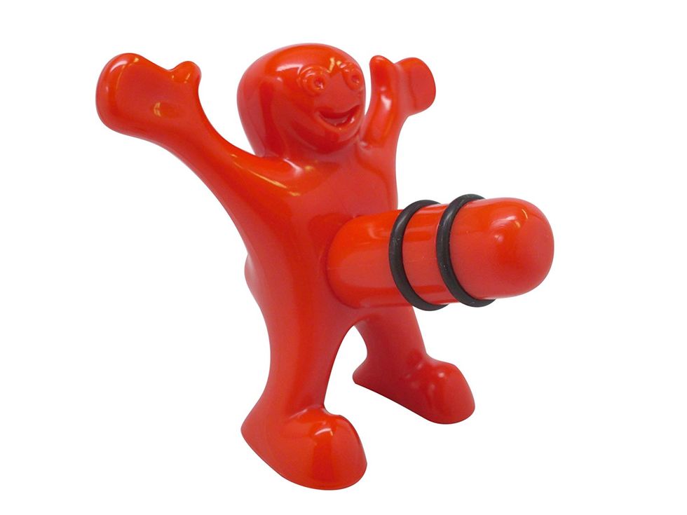 This little guy is, uh, very excited to be your new wine stopper! I am very sorry to say this but his name is Sir Perky and there is nothing I can do to change that. The product description says Sir Perky is made out of "durable rock hard plastic" that "makes Happy Man ready for the job." If only all men were as happy to do their jobs as Sir Perky here *wink wink*.