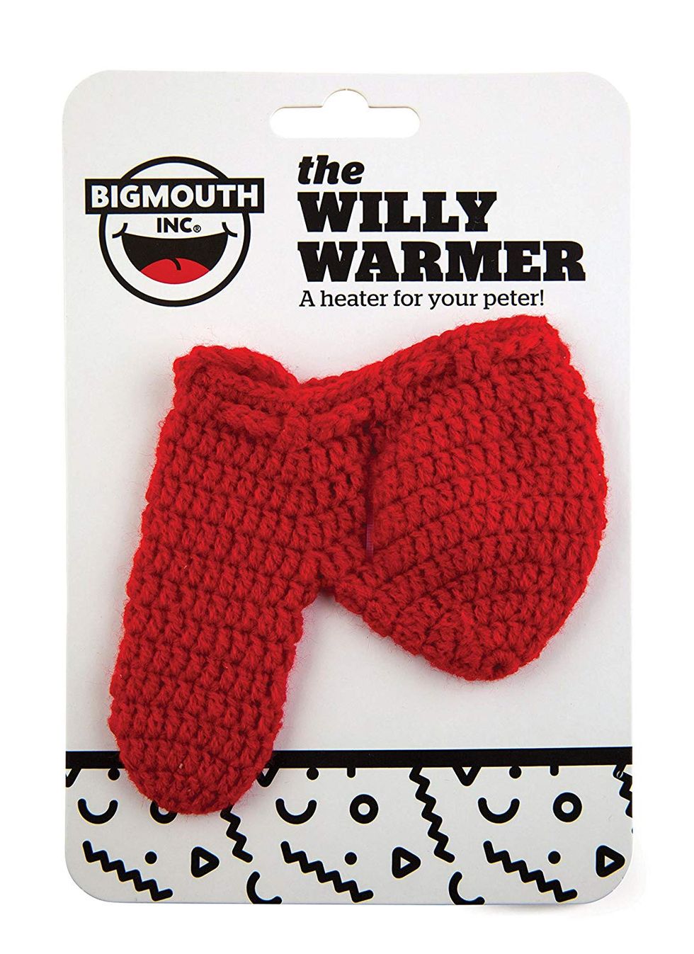 This is the Willy Warmer! Also known as a "heater for your peter." It is the perfect stocking stuffer or gag gift for the guy who has everything...but suffers from a slight chill down there. If you have some rather prudish family members, you can always claim that the Willy Warmer is actually a mitten for someone with a very large thumb. I don't know your family!