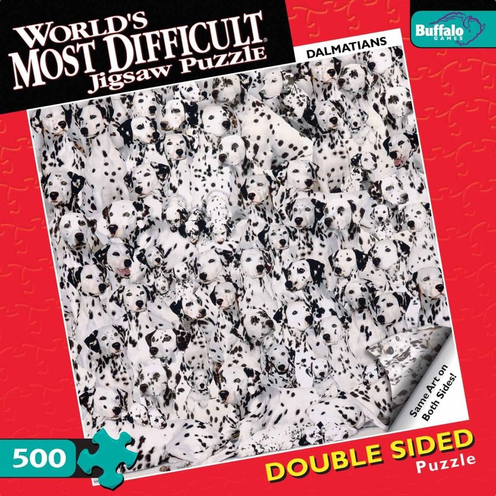 A double-sided puzzle. If you think that will make it easier, think again because it is in fact that same art on both sides. You'll never stop seeing dalmations.What a lovely field.