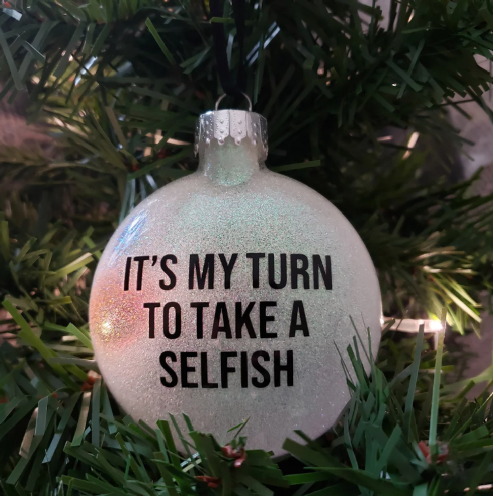 "Handcrafted with care" guaranteed!The It's My Turn To Take A Selfish bauble for all our hearts.