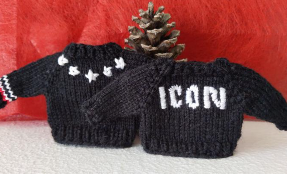 Let Santa know that it's your turn to take a selfish this season with this sparkly Christmas ornament.Just look at these Dave Rose Miniature Sweaters!