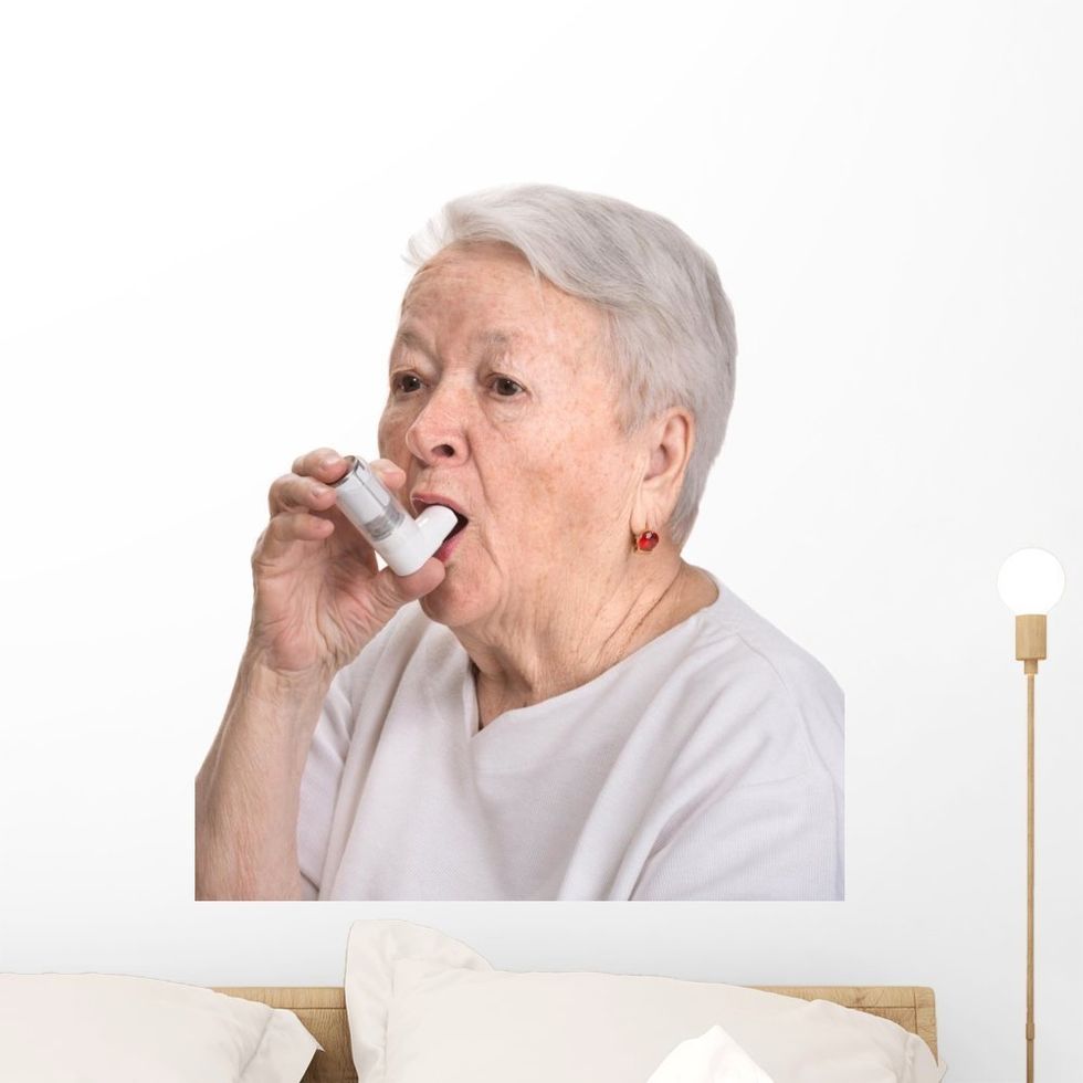 The Go Girl allows women to pee while standing up. It fits in your purse or your glove compartment and is perfect for those public restroom debacles and side of the road emergencies.This Wall Decal of an old woman with asthma.
