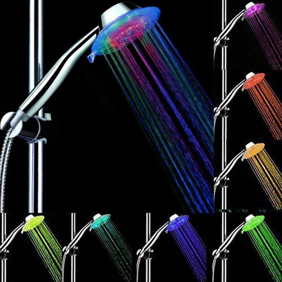 We thought that this world was complete. But then we saw this Marilyn Monroe knock-off dog costume and saw this hilarious little bulldog with boobs. And now the world is complete.This Light-Up Shower Head.