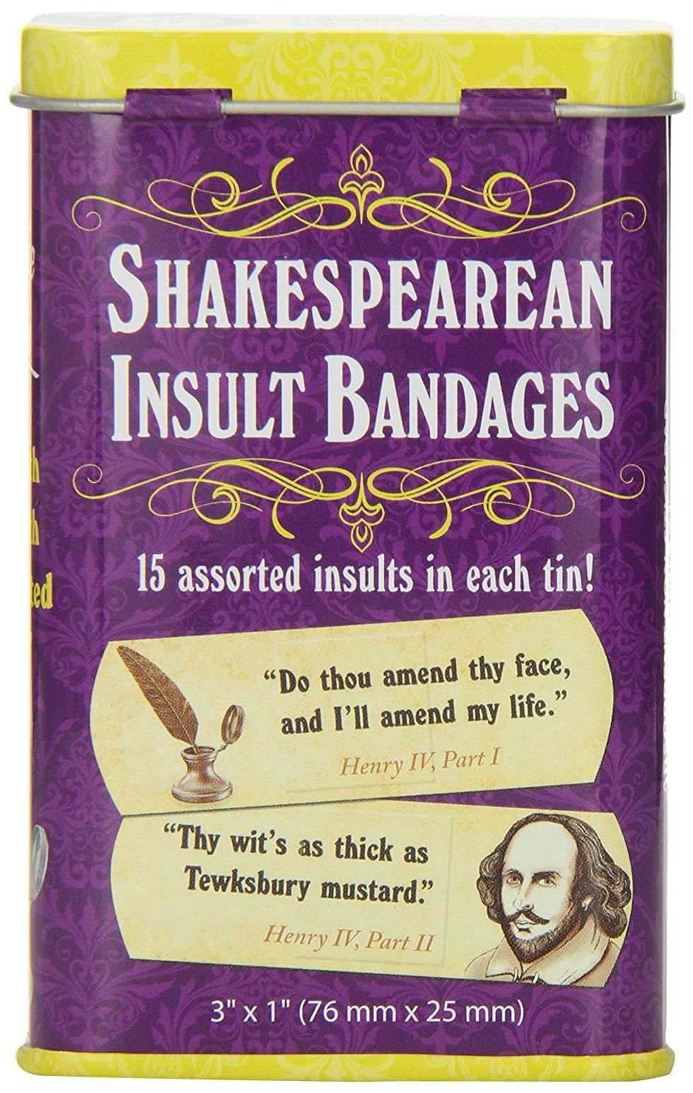 So why not ease the pain with these Accoutrements Shakespearean Insult Bandages? Sure, they work like typical bandages, but also feature hilarious Shakespearean insults such as "Thy wit's as thick as Tewsbury mustard," which I personally can't wait to use on someone.
