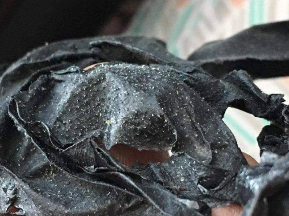 Let us all take a moment to marvel at the stuff that was pulled out of this person's face. I mean, wow, ya know? This mask can be used to remove acne, blackheads, blemishes, stains, and/or oil spots from your face, and all you have to do is put it on and take it off after it dries. When you do, you'll be greeted by all the gunk that was previously taking up residence in your pores.