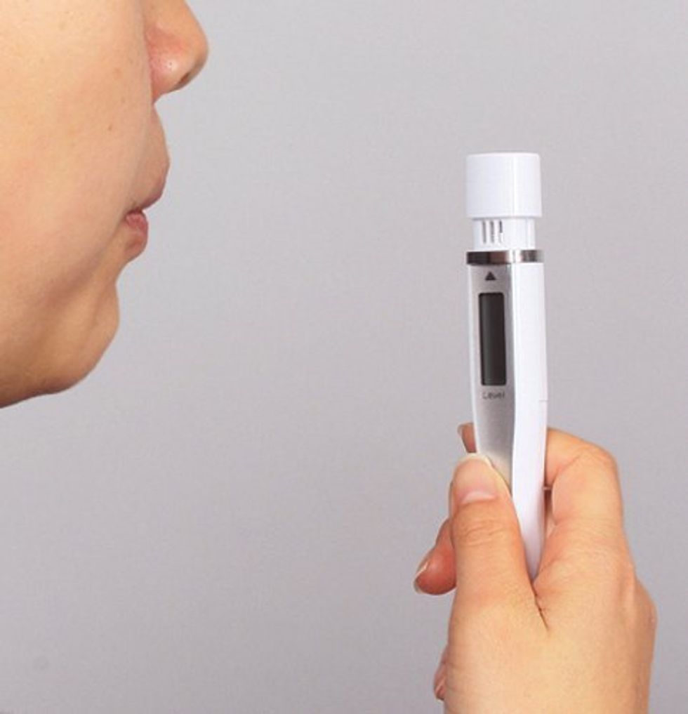 You've just enjoyed a particularly garlicky pasta and suspect that your breath may stink a bit. What do you do? You could try the old breath-into-your-hand trick, but that may no longer be the best option. Why? 'Cause now there's technology that can let you know for sure whether it's time to pop a Tic Tac. Simply breathe into the sensor on this device and it'll give you a heads up.