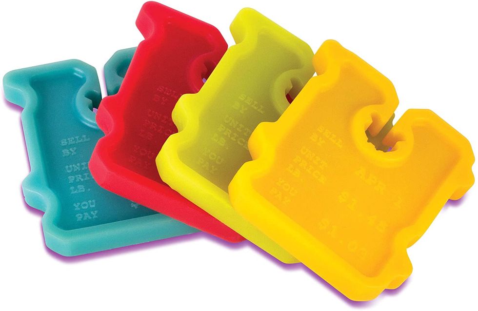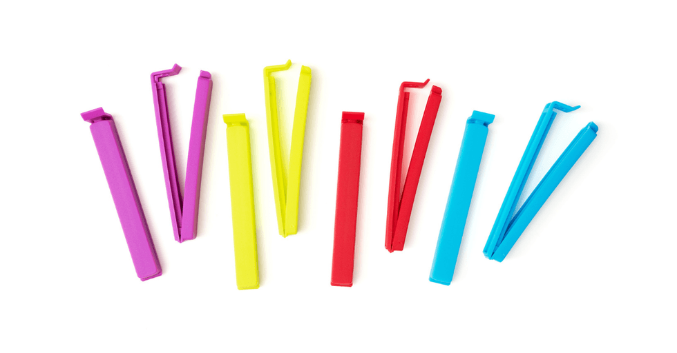 Pastel-colored plastic teeth securely lock in the freshness of your bread, chips, pasta, and rice with the Bettli Grips bag cinch. Just squeeze and grip and throw it back in the cupboard! Truly one of the best bag cinches.Cook with Color Magnetic Sealing Clips