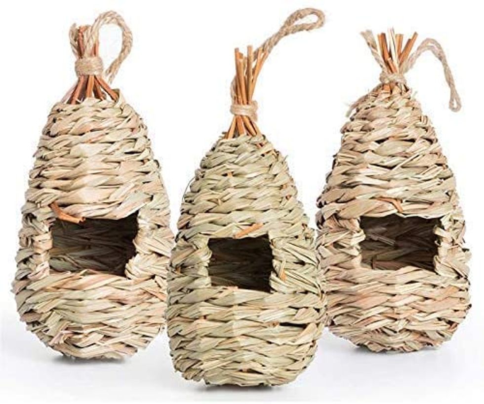 Are you a fan of hummingbirds, specifically? They're absolutely adorable, and fascinating to watch as they zoom around the garden. So, if you're looking to make sure you get a few hummers at your house each year, provide them with homes! These hummingbird houses are hand-knitted from natural materials, ready to hold some parents and hatchlings.Kimdio Bird Feeder Hanging Tray
