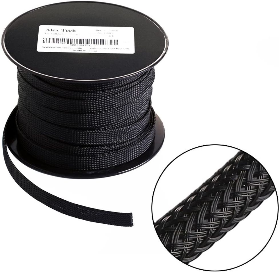 Some cables come already equipped with a braided material cover, but plenty don't. So, sometimes, it helps to just apply that covering yourself! Here's a whole 100-foot roll of the stuff, ready to be wrapped around your important charging cables.