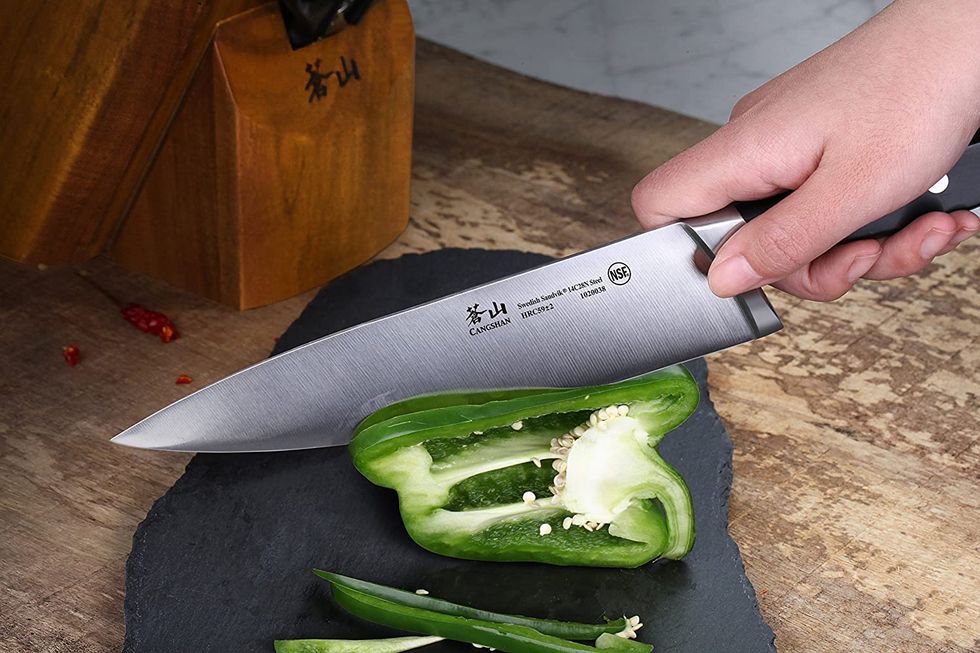 Among the best professional chef knives on Amazon right now, you'll find the DALSTRONG Chef's Knife. Featuring a unique design, this product is made with high-carbon stainless steel. The result is a sleek knife full of strength and durability.Cangshan Swedish Sandvik Steel Forged 8-Piece Knife Block Set