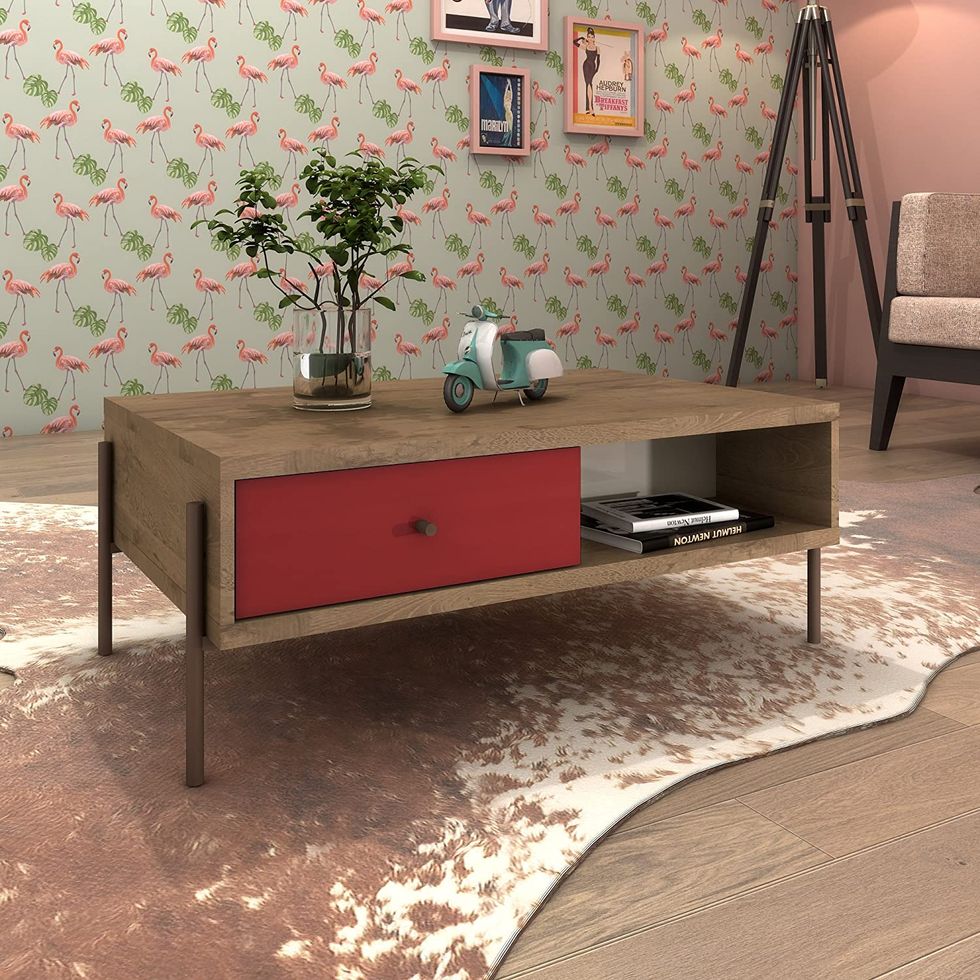 If you have bold style, you'll need a coffee table that will fit in with your decor. This Manhattan Comfort Joy Series Coffee Table has a bright red accent that's eye-catching without being overpowering. The drawer gives you the perfect place to store remotes, and controllers and the metal legs bring an industrial flair.