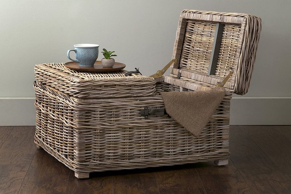 This East at Main Hank Grey Rattan Square Coffee Table is the epitome of charming style. The basket design allows you to store larger items like blankets and throw pillows inside, and the hand-crafted rattan construction brings intrigue. The best part? It's made from sustainable materials so you can feel good about your purchase.