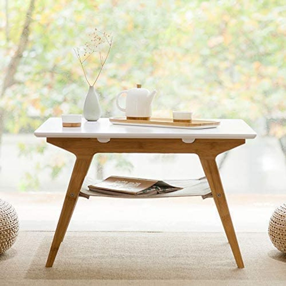 When your living room is already cramped, it can seem impossible to add yet another piece of furniture to the mix. But this ZEN'S Bamboo Square Coffee Table Double Layer White Top Table with Storage is compact enough to fit into even the smallest of spaces without taking it over.