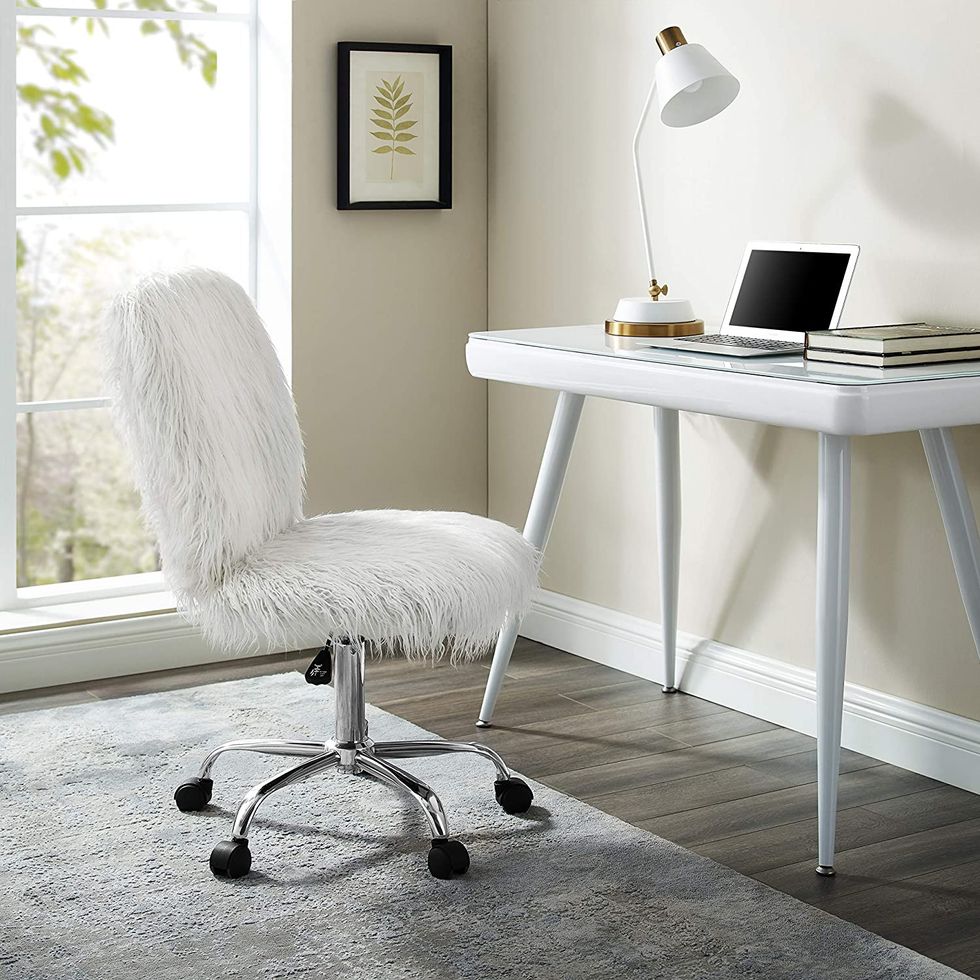 Time for a quick swing in the opposite direction: minimalism. This chair is the best desk chair for you if you don't want a hulking behemoth taking up half your room. If you have a minimal style, and want a chair that lets you engage your body for good posture, this armless beauty is perfect for you. Plus every review mentions how comfy it is, which is the most important.Furry chair!