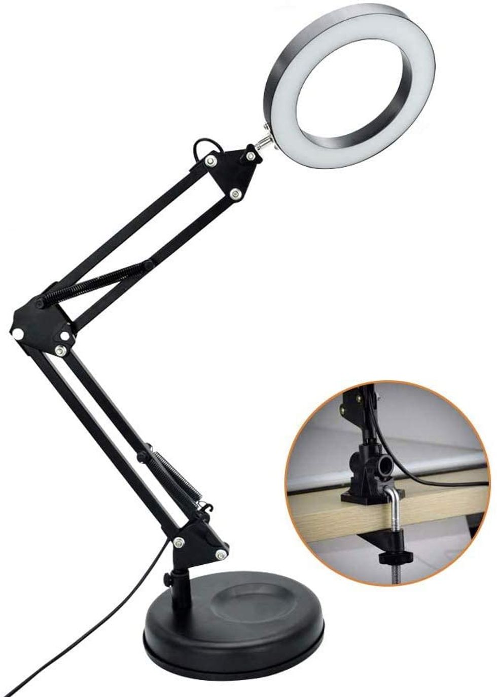 You know we couldn't end this list without a ring light. But this ain't yo mama's ring light. It functions perfectly as a full desk lamp: it's got multiple colors and brightness levels, it can sit on your desk or clamp on the side, and it has multiple joints so you can move it. But you know when you're sitting in your Zoom meeting and wish your lighting was doing a little bit more for you? That's what this lamp is for.Trending