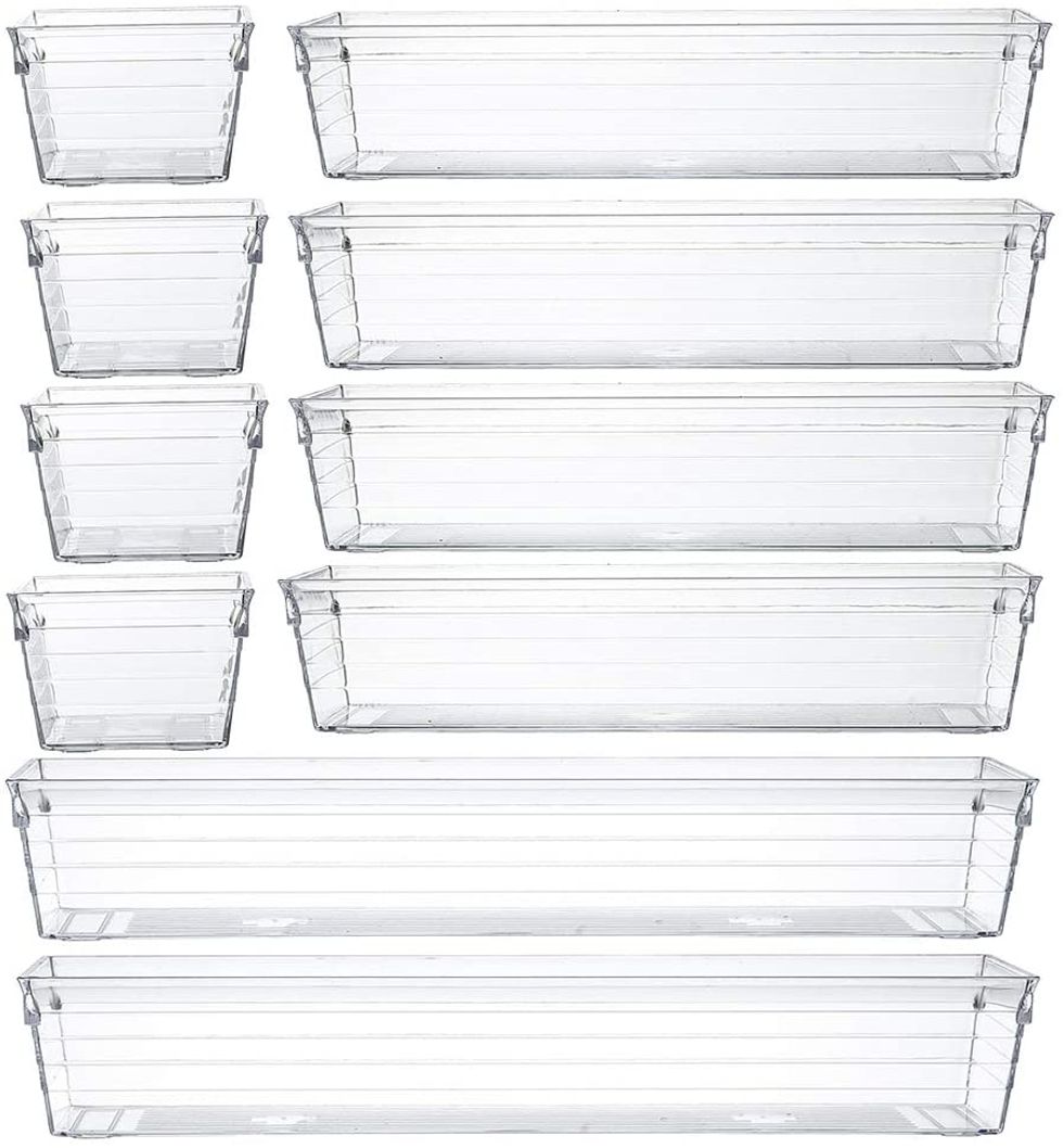 So you don't want to commit to an actual drawer tray, but you still want to take advantage of the same level of organization? We hear you. That's why you should purchase one of Amazon's best kitchen drawer dividers. We love the Practical Comfort Adjustable Drawer Organizer for its sleek look, durable material, and incredibly adjustable nature.Clear Plastic Silverware and Utensil Organizer