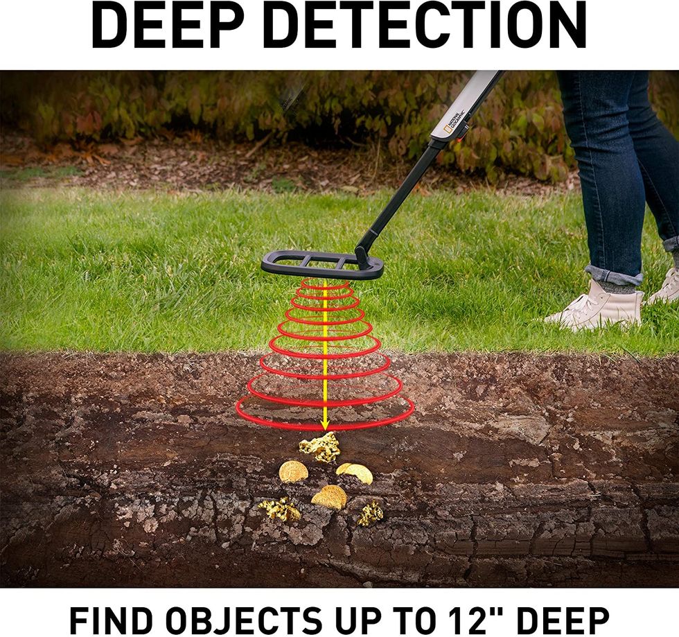 The Bounty Hunter QSIGWP Quick Silver Metal Detector with Pinpointer features push-button discrimination and one-touch depth control, making it one of the easiest metal detectors to use. Plus, the included pinpointer can locate the exact locations of buried metal with audio and vibration signals.NATIONAL GEOGRAPHIC PRO Series Metal Detector