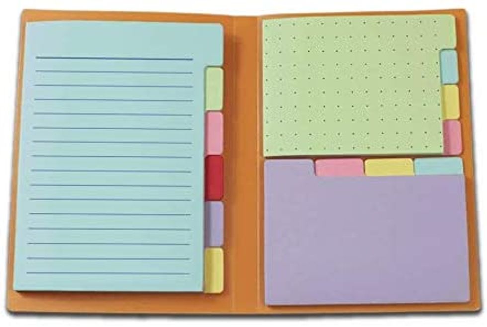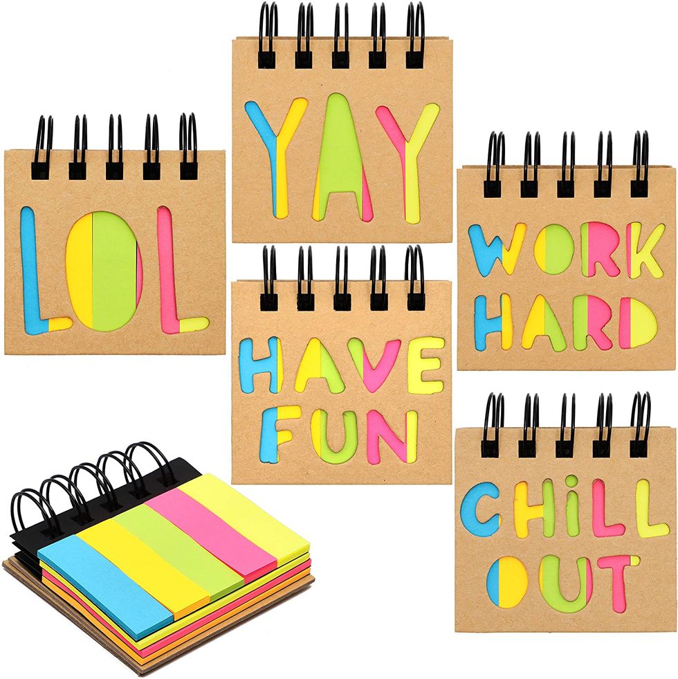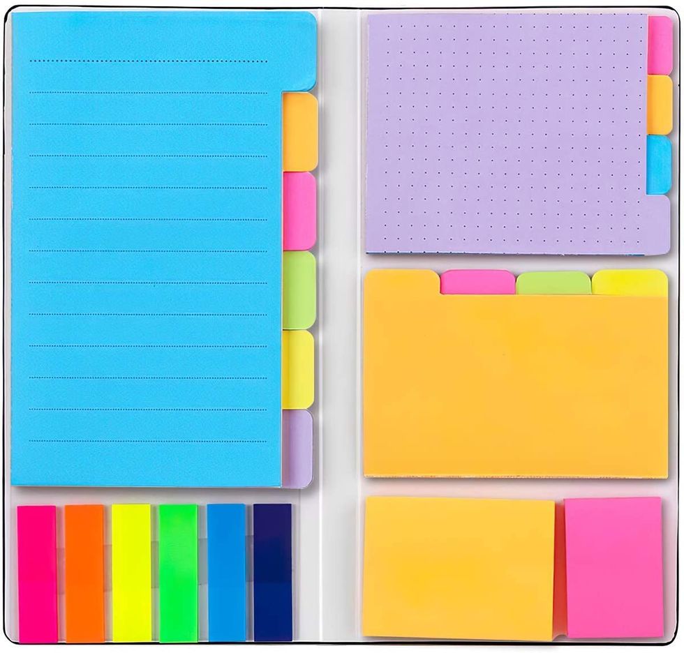 Depending on how you feel at any given moment, take a page out of this Paper Junkie Sticky Note Set with Spiral Binding to describe your mood. From "chill out" and "LOL" to "work hard" and "yay," consider these personalized sticky notes are a fun way to spice up your workday or study time.WELZA Deluxe Divider Self-Stick Notes Pads Bundle