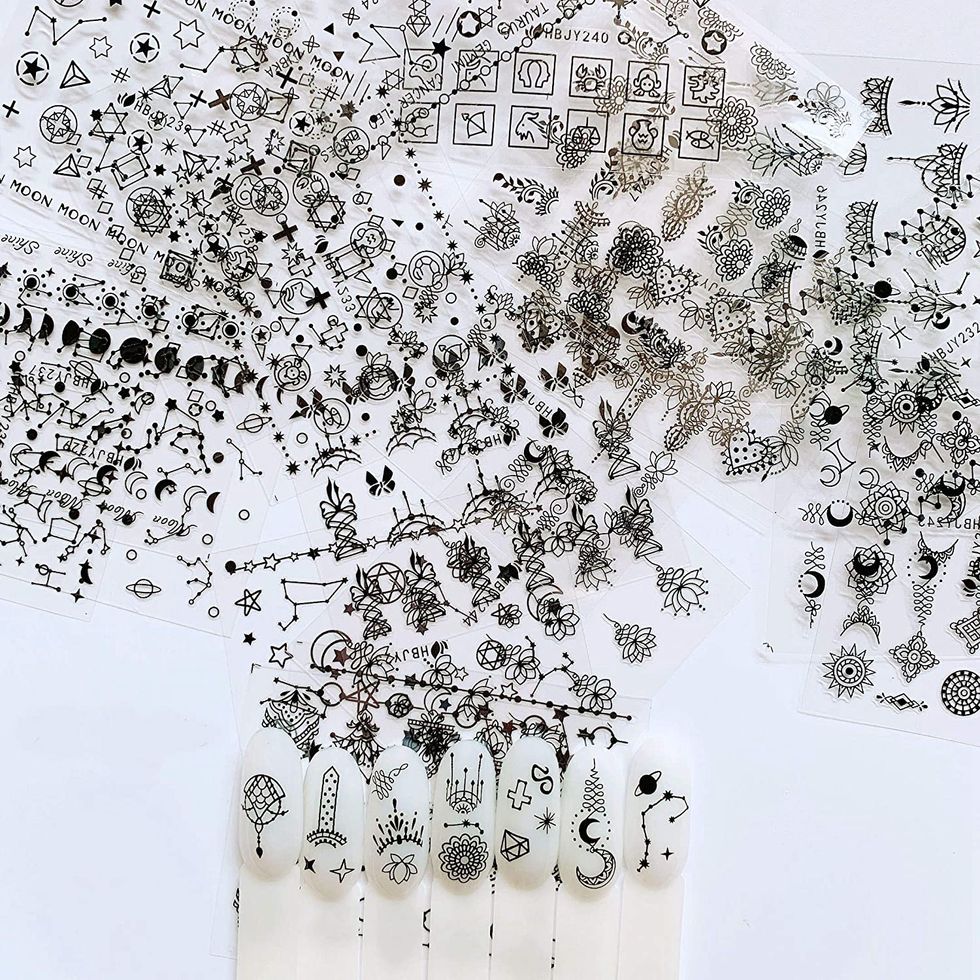 Let's start with these gold and silver metallic nail stickers. They look as cool as anything when applied to your nails, with lots of intricate geometric patterns that we definitely can't apply by hand! With 12 sheets of designs, there's plenty of variety for multiple manicures.SkyCooool Black White and Colorful Flower Design Decals