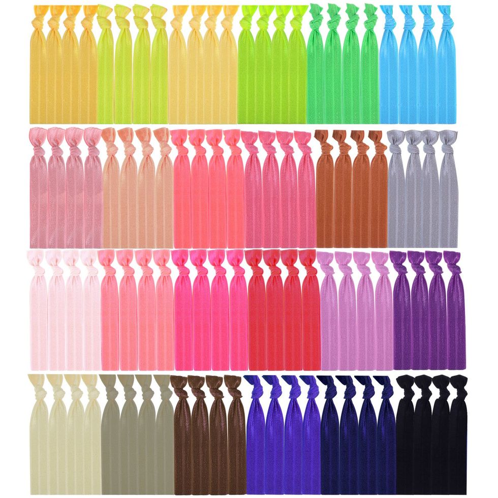 Ok ok, so we've covered the basics. Let's get wild. This set of 100 hair ties (yeah, 100) comes in all different colors to match any outfit or event. There's even four glitter shades, which amps this up further. You might think these are only good for fancier contexts, but they also hold up to the gym and outdoor activites. Soft for your hair, but a solid hold no matter what you're doing.