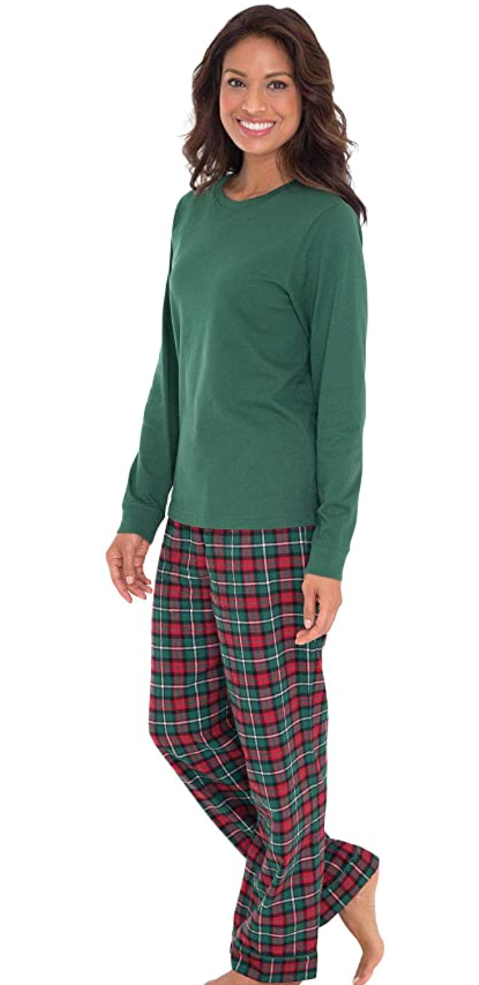 For some reason, flannel is inextricably linked with plaid. If you're not a huge fan of plaid, this pajama set may be right for you: while the bottoms have patterns (including plaid), the top is a single color shirt. I tend to mix and match my PJs and this gives me more options.