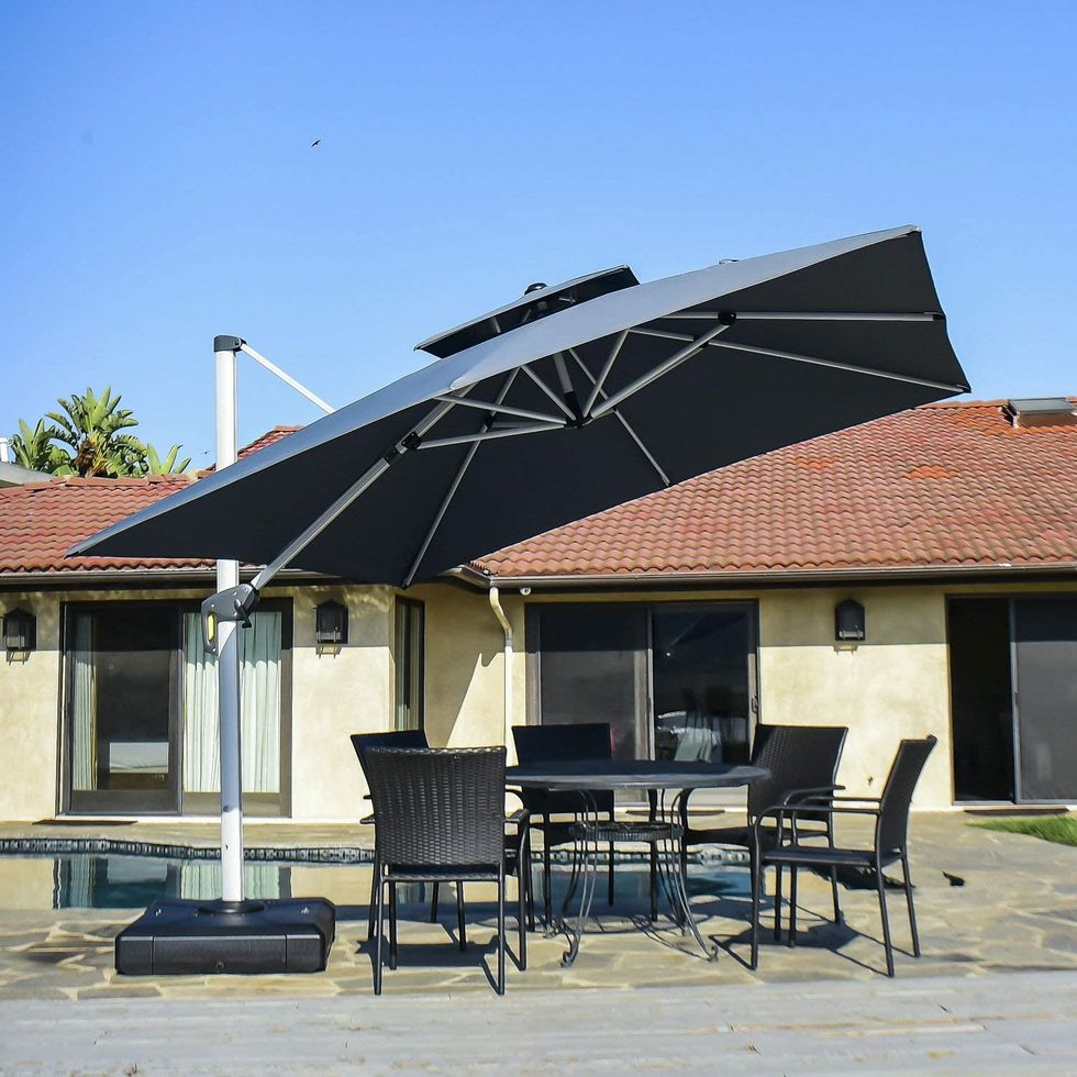 If your backyard is a bit cramped but you still want to get some relief from the blazing sun, don't fret: this ONIVA Picnic Time Brand Outdoor Canopy Sunshade Umbrella is specifically designed for smaller spaces. And at under $35 bucks, this umbrella allows you to upgrade your patio without downgrading your bank account.Best Offset Patio Umbrella