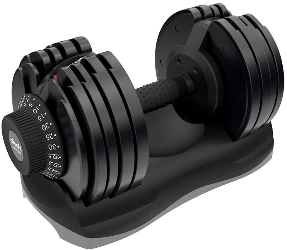 It turns out, there are dumbbell sets out there that won't take up an entire room. This ATIVAFIT Adjustable Dumbbell 71.5 Pounds Fitness Dial Dumbbell with Handle and Weight Plate was made for home gyms. The convertible design adjusts from 11 pounds to 71.5 pounds.Best Home Gym Exercise Bike