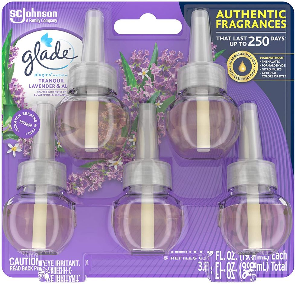 And speaking of scented oil for your Glade plug-in freshener, here's a nice lavender and aloe-scented pack of five oil bottles. It's a pretty great deal ($10 for five bottles) and if you're not a lavender fan, Glade has plenty of other scents for you to choose from.