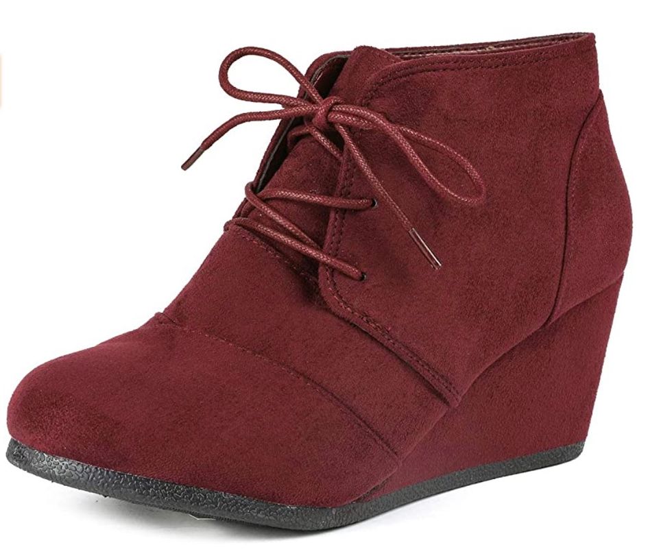 Ever since my physical therapy on my feet, I've become a believer in wedge heels to help support my arches. High arched people (like myself) have a hard time finding supportive shoes, and wedge heels are a great way to get some height while also being able to walk around all day. These lace-up booties have just enough heel and work well with a variety of outfits thanks to the many colors you can buy them in.This Velvet Boot That's Perfect With A Holiday Dress