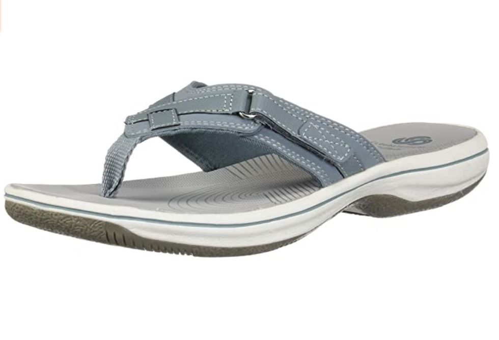 Spotlight on Clarks again. You'll seriously want to wear these flip flops (also called thongs) pretty much everywhere. Here's the thing: Most sandals are so flat and poorly made that they actually hurt your feet in the long run, but not with this pair. The crafted arch support perfectly hugs your feet, so you can keep on getting your steps in without pain later.These Colorful Sandals That Are Great For Walking Anywhere